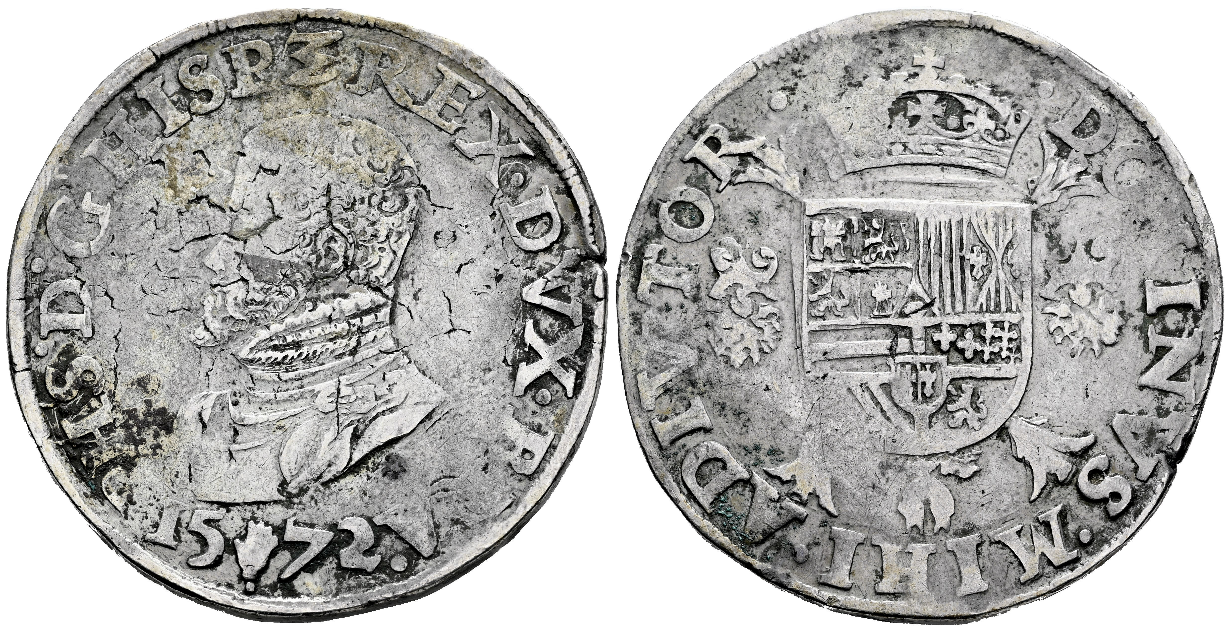 Felipe II (1556-1598). 1 escudo felipe. 1572. Amberes. (Tauler-1130). (Vti-1199). (Vanhoudt-298.AN). Ag. 33,94 g. La P de HISP rectificada sobre una R. MBC. Est...170,00.