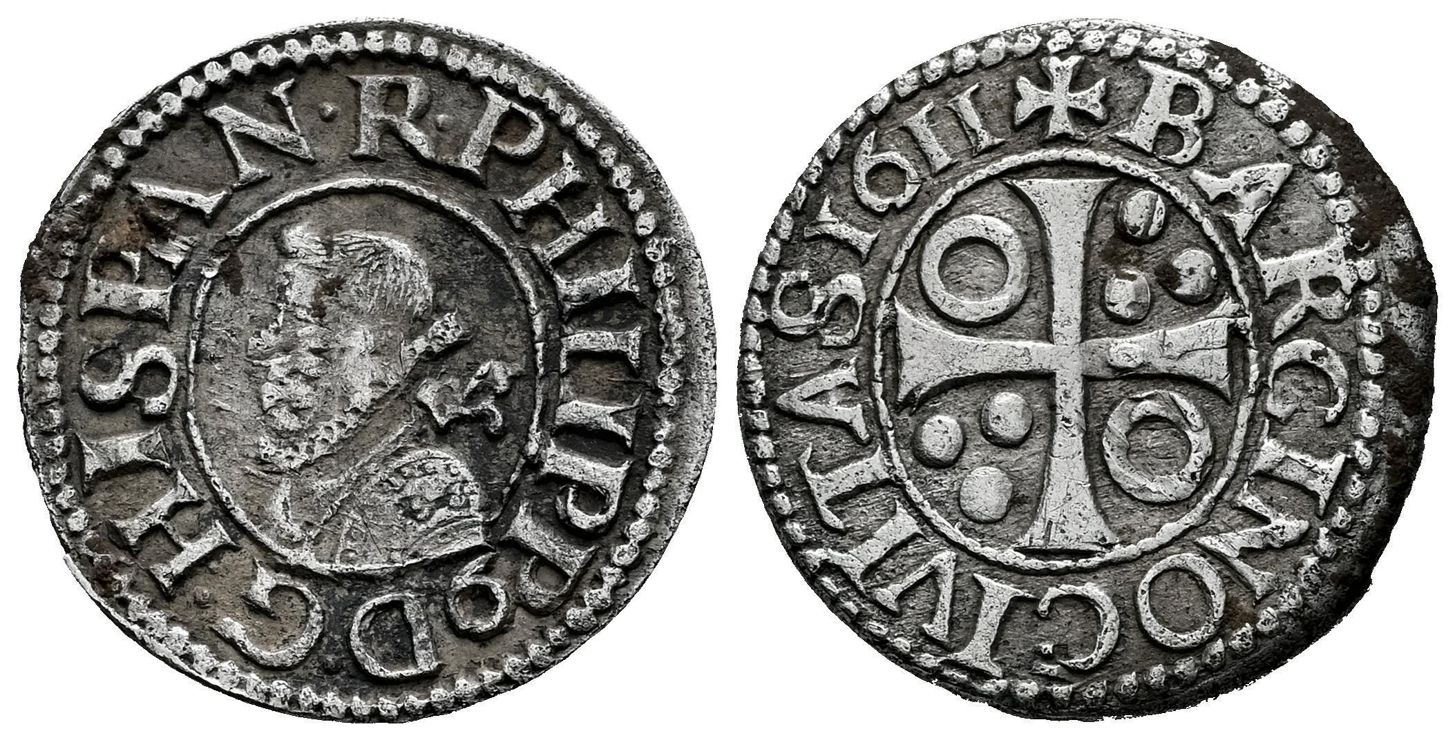 Felipe III (1598-1621). 1/2 croat. 1611. Barcelona. (Cal-374). (Cru C.G-4342). Ag. 1,87 g. MBC-/MBC. Est...50,00.