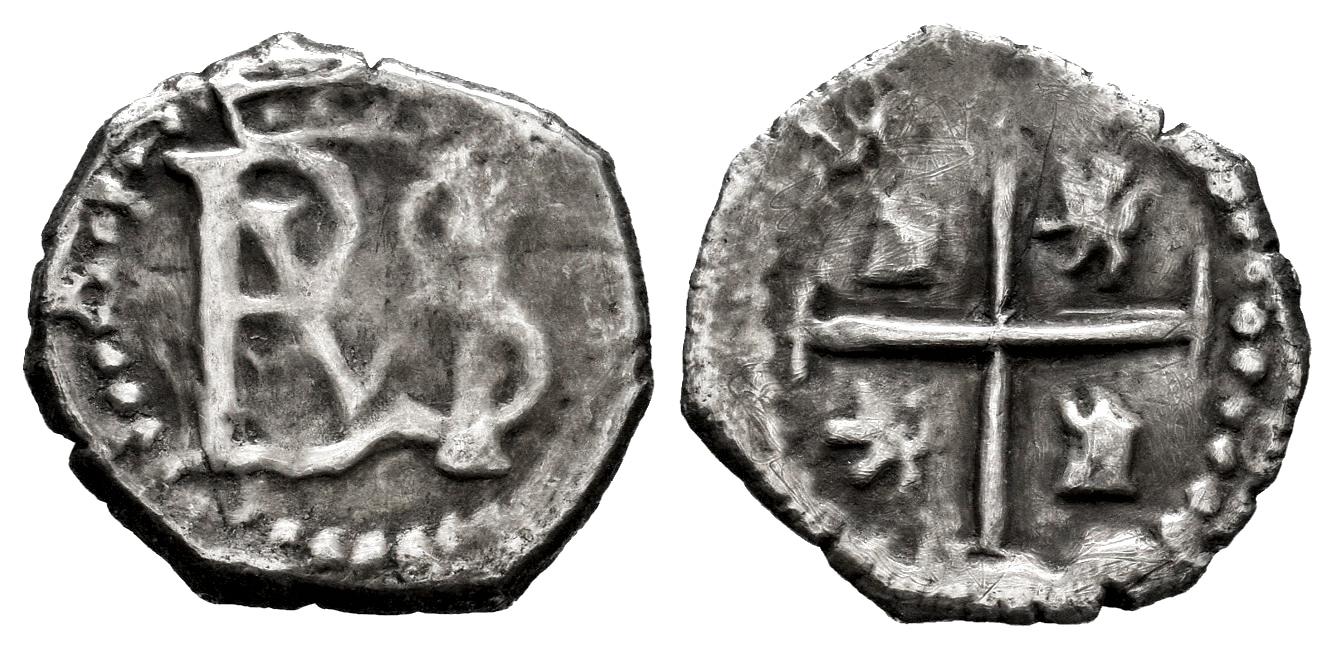 Felipe III (1598-1621). 1/2 real. ND. Potosí. (Cal-401 var). Ag. 1,32 g. Sin marca de cea ni ensyador. MBC. Est...70,00.
