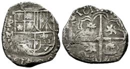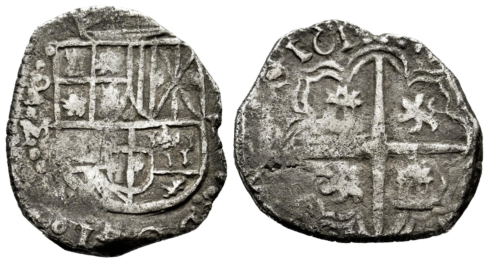 Felipe III (1598-1621). 2 reales. 161(7). Potosí. M. (Cal-629). Ag. 6,14 g. Ceca y ensayador a la izquierda, valor a la derecha. Último dígito de la fecha no visible. Escasa. MBC-. Est...150,00.