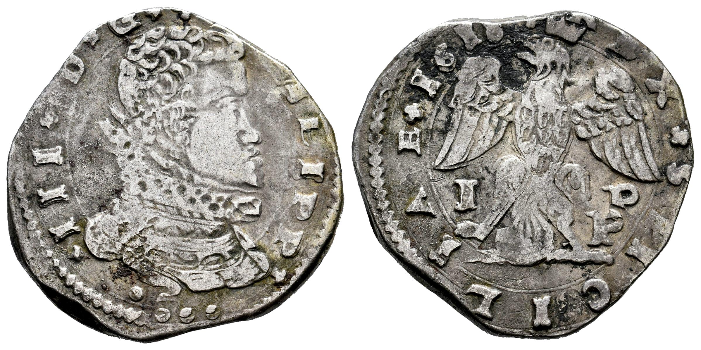 Felipe III (1598-1621). 4 tari. 1618. Messina. IP. (Tauler-1857). (Vti-141). (Mir-345/14). Ag. 9,77 g. MBC-/MBC. Est...60,00.