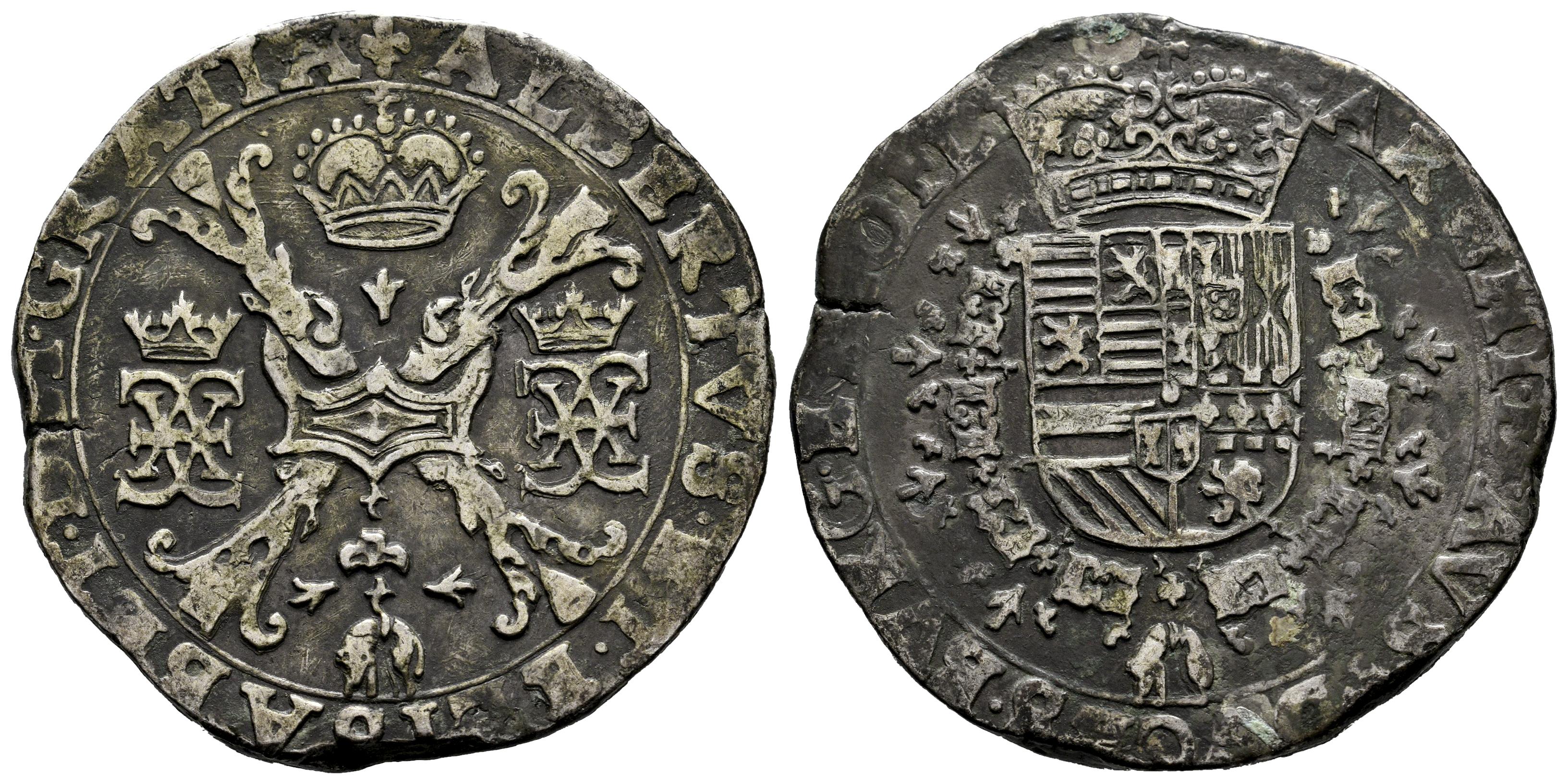 Alberto e Isabel (1598-1621). 1 patagón. ND. Brujas. (Tauler-1717). (Vti-370). (Vanhoudt-619.BG). Ag. 27,85 g. Pátina. MBC+. Est...150,00.