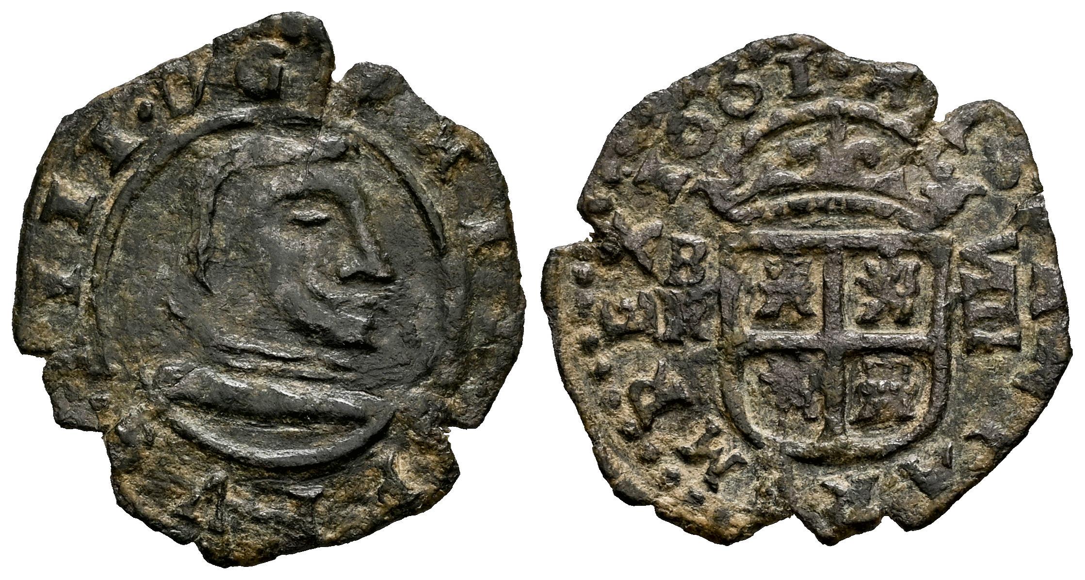 Felipe IV (1621-1665). 8 maravedís. 1661. Burgos. R. (Cal-302). (Jarabo-Sanahuja-M11). Ae. 1,18 g. Fecha completa. MBC. Est...70,00.