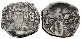 Felipe IV (1621-1665). Dieciocheno. 1646. Valencia. (Cal-820). Ag. 2,01 g. Seis puntos rodeando el escudo. Escasa. Ex Herrero (13/12/2012), lote 419. MBC-. Est...140,00.