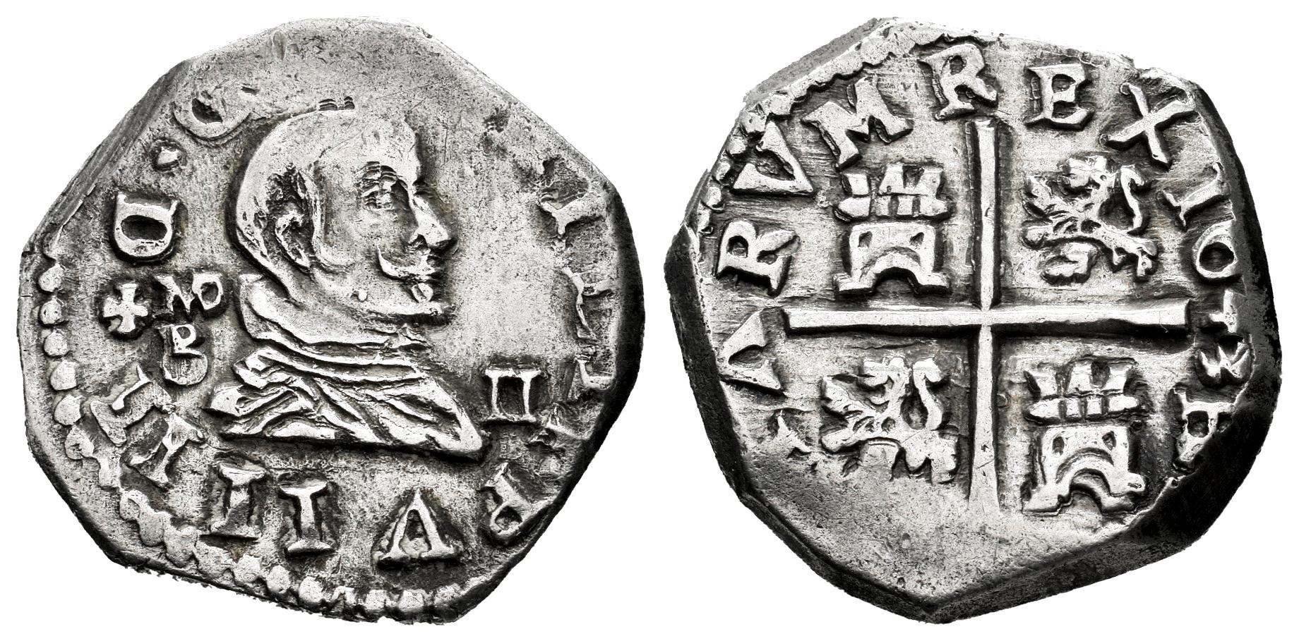 Felipe IV (1621-1665). 2 reales. 1643. Madrid. B. (Cal-859). Ag. 5,37 g. MD en horizontal. La leyenda del reverso comienza a las 4h. Buena acuñación con todos los datos visibles. Rara. MBC+. Est...350,00.