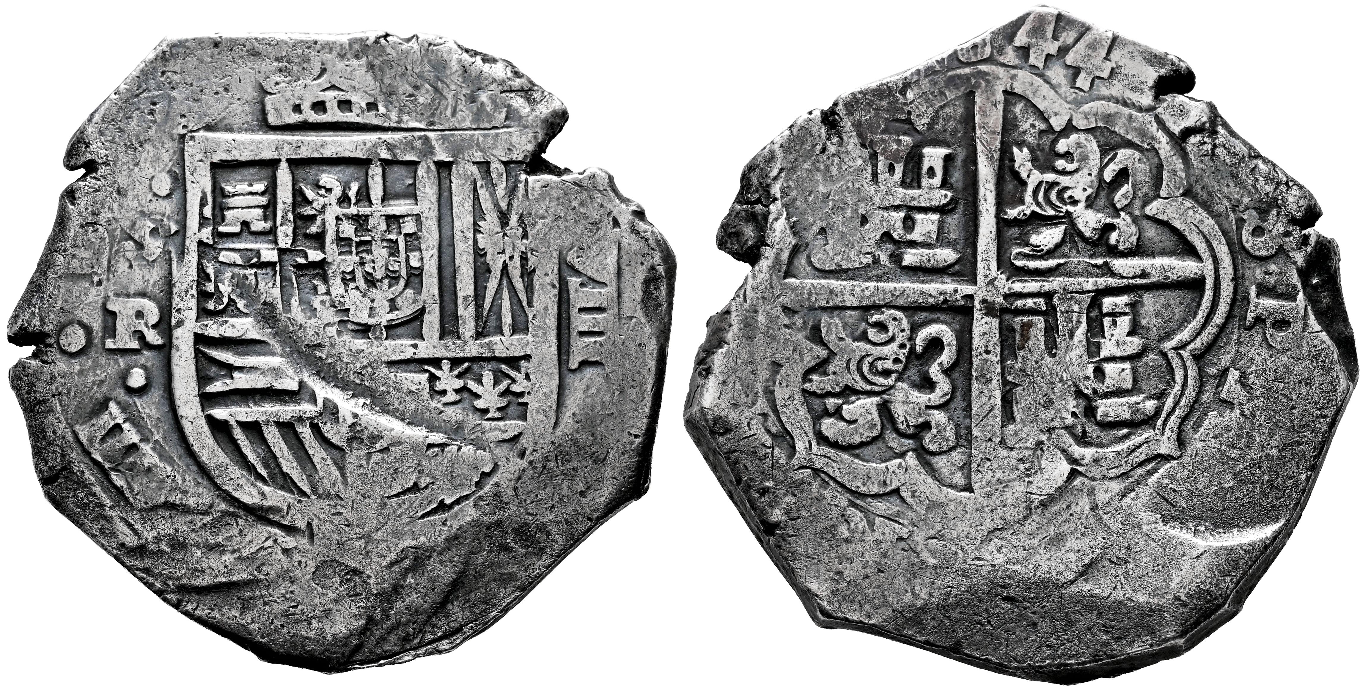 Felipe IV (1621-1665). 8 reales. 1644. Sevilla. R. (Cal-1658). (Jarabo-Sanahuja-C519). Ag. 27,52 g. Fecha regrabada. Marca de ceca, ensayador y ordinal del rey visibles. Tono. Ex Cayón (04/02/2012), lote 384. Ex Colección José Octavio Busto. Conserva etiqueta del coleccionista. MBC/MBC-. Est...200,00.