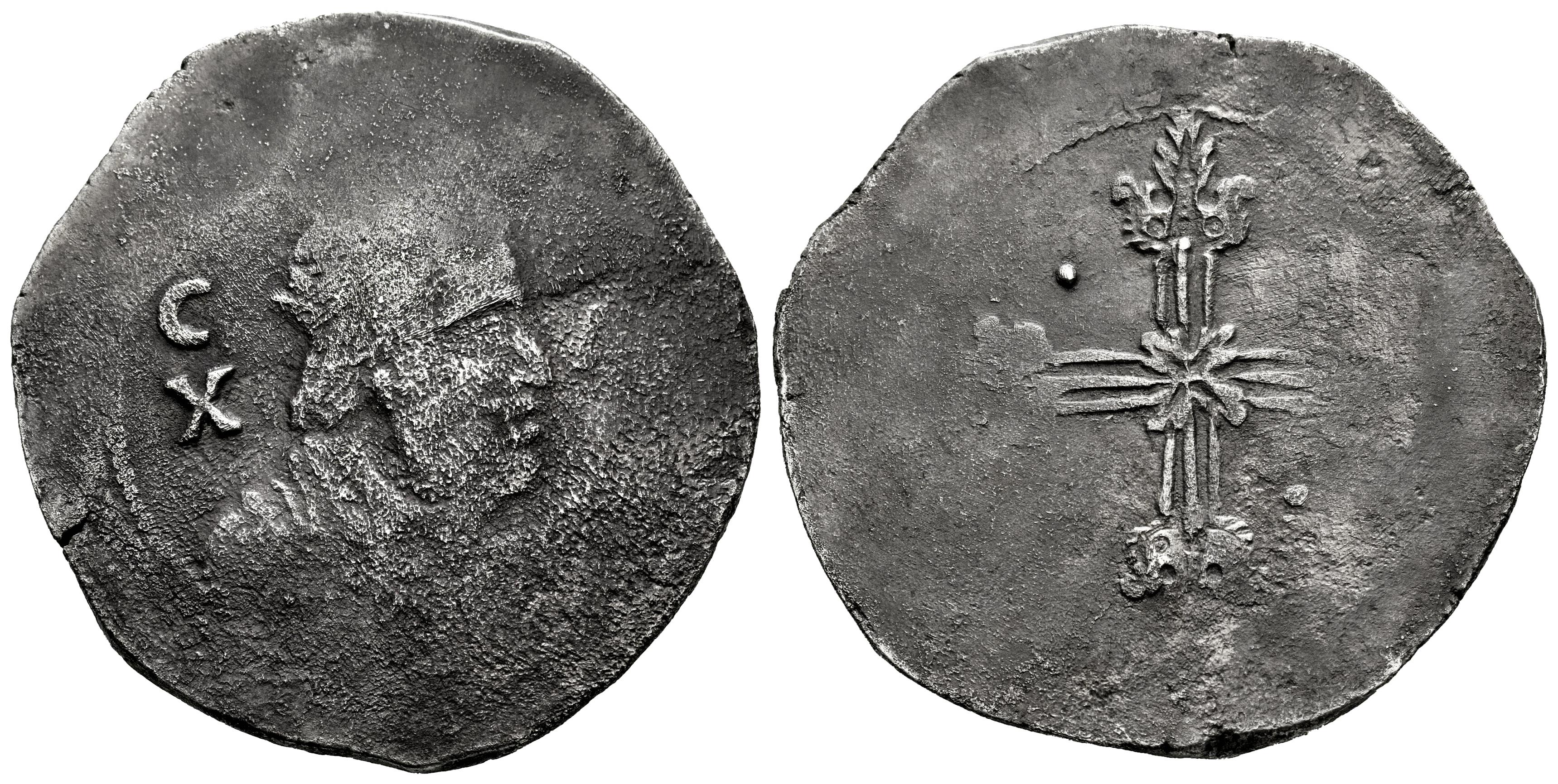 Felipe IV (1621-1665). 10 reales. (1641-1647). Cagliari. C/X-(A). (Tauler-pág. 294). Ag. 26,16 g. Fecha no visible. Acuñación defectuosa, habitual para esta emisión. Rara. BC+. Est...300,00.