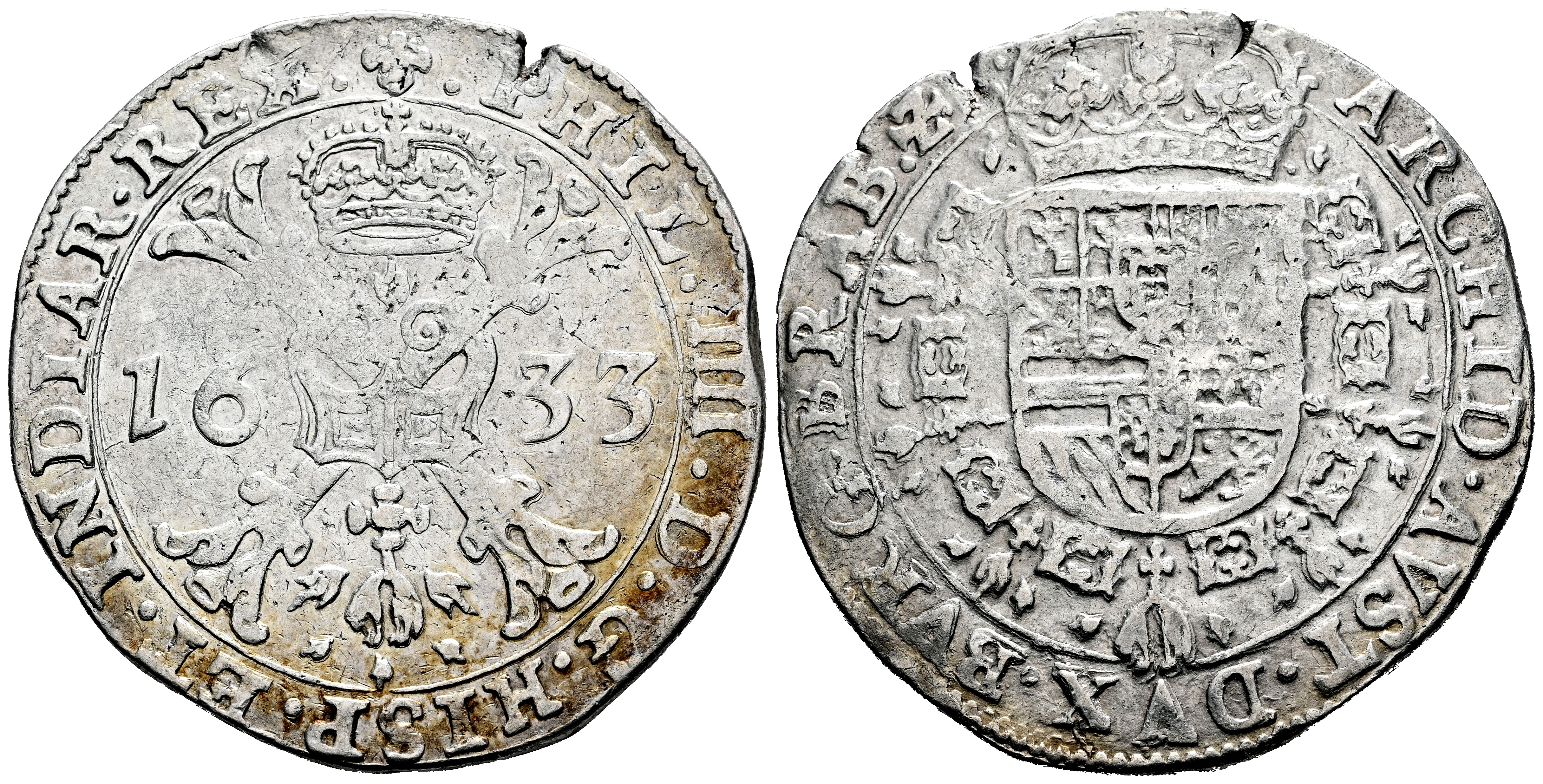 Felipe IV (1621-1665). 1 patagón. 1633. Brujas. (Tauler-2664). (Vti-1061). (Vanhoudt-645.BG). Ag. 27,42 g. Ligero tono en anverso. Ex Tauler&Fau 9 (12/04/2018), lote 307. MBC+. Est...200,00.