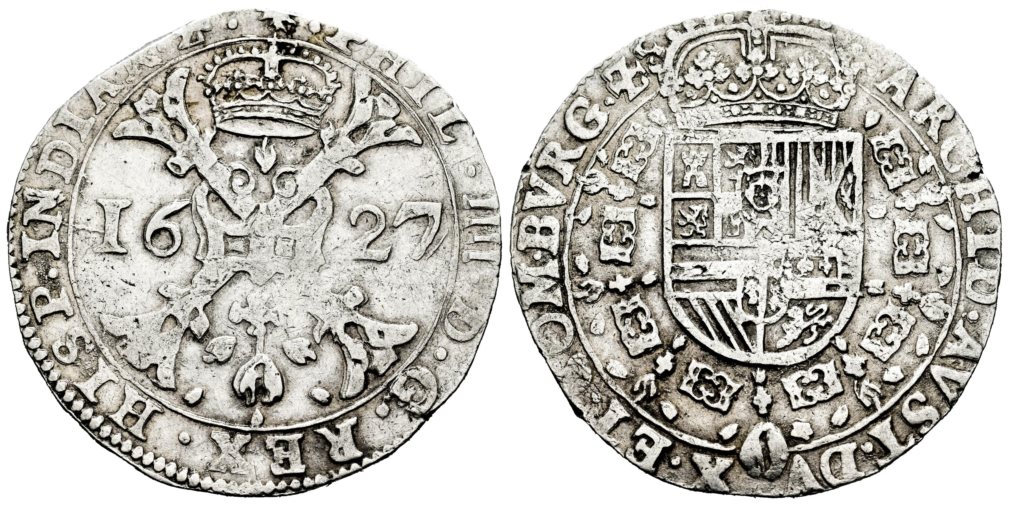 Felipe IV (1621-1665). 1 patagón. 1627. Dole. (Tauler-3065). (Vti-1628). (Vanhoudt-645DL). Ag. 28,08 g. Escasa. MBC. Est...350,00.
