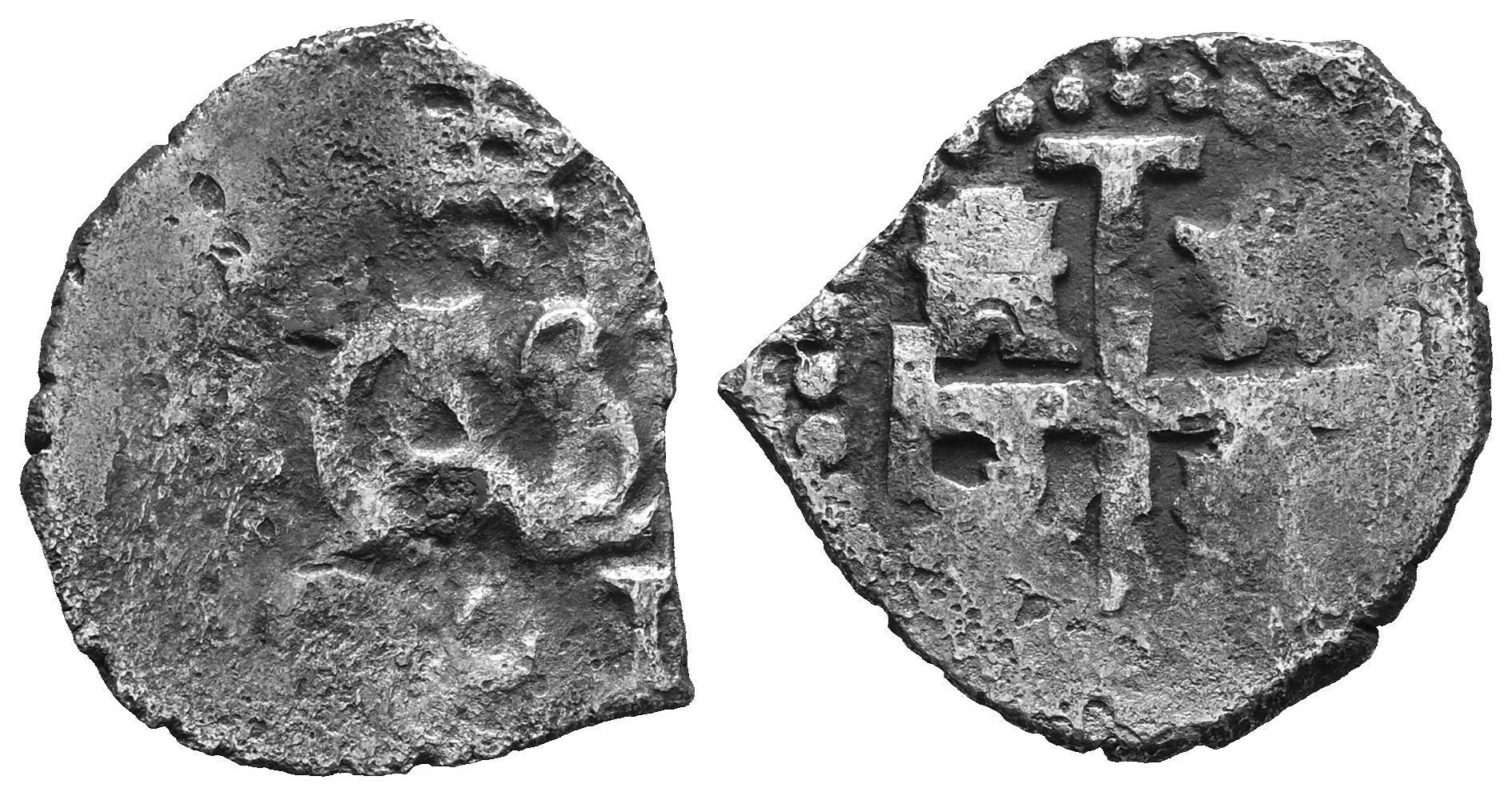 Carlos II (1665-1700). 1/2 real. 1701. Potosí. (Cal-190). Ag. 1,29 g. Acuñación póstuma. Oxidaciones. BC+. Est...30,00.