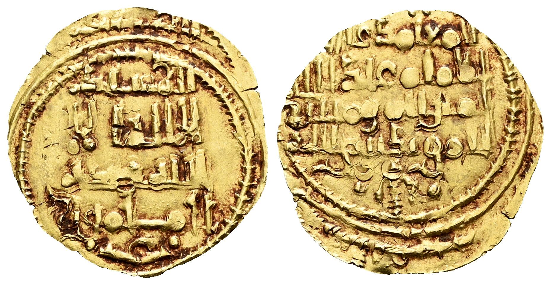 Reinos de Taifas. Muhammad Ibn Abbad, Al-Mutamid (Abbadies). Fracción de Dinar. 461-484 H. Madinat Ishbiliya (Sevilla). Taifa de Sevilla. (Vives-978). (Prieto-421e). Au. 1,10 g. Rara. MBC. Est...350,00.