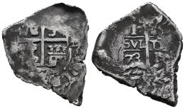 Carlos II (1665-1700). 1 real. 1673. Potosí. E. (Cal-258). Ag. 2,70 g. Recortada. MBC-/BC+. Est...40,00.