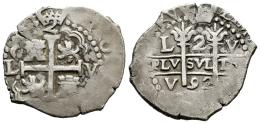 Carlos II (1665-1700). 2 reales. 1692. Lima. V. (Cal-349). Ag. 6,69 g. Triple ensayador. MBC+. Est...300,00.