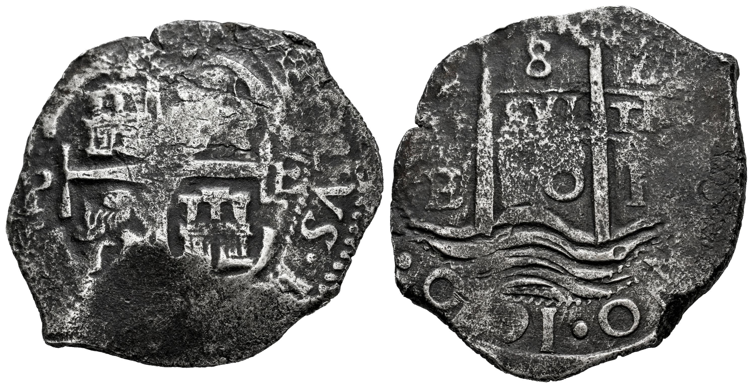 Carlos II (1665-1700). 8 reales. 1670. Potosí. E. (Cal-701). Ag. 23,18 g. Doble fecha y doble ensayador. Visible parte del nombre del rey. Leves oxidaciones. Pátina. MBC-. Est...350,00.