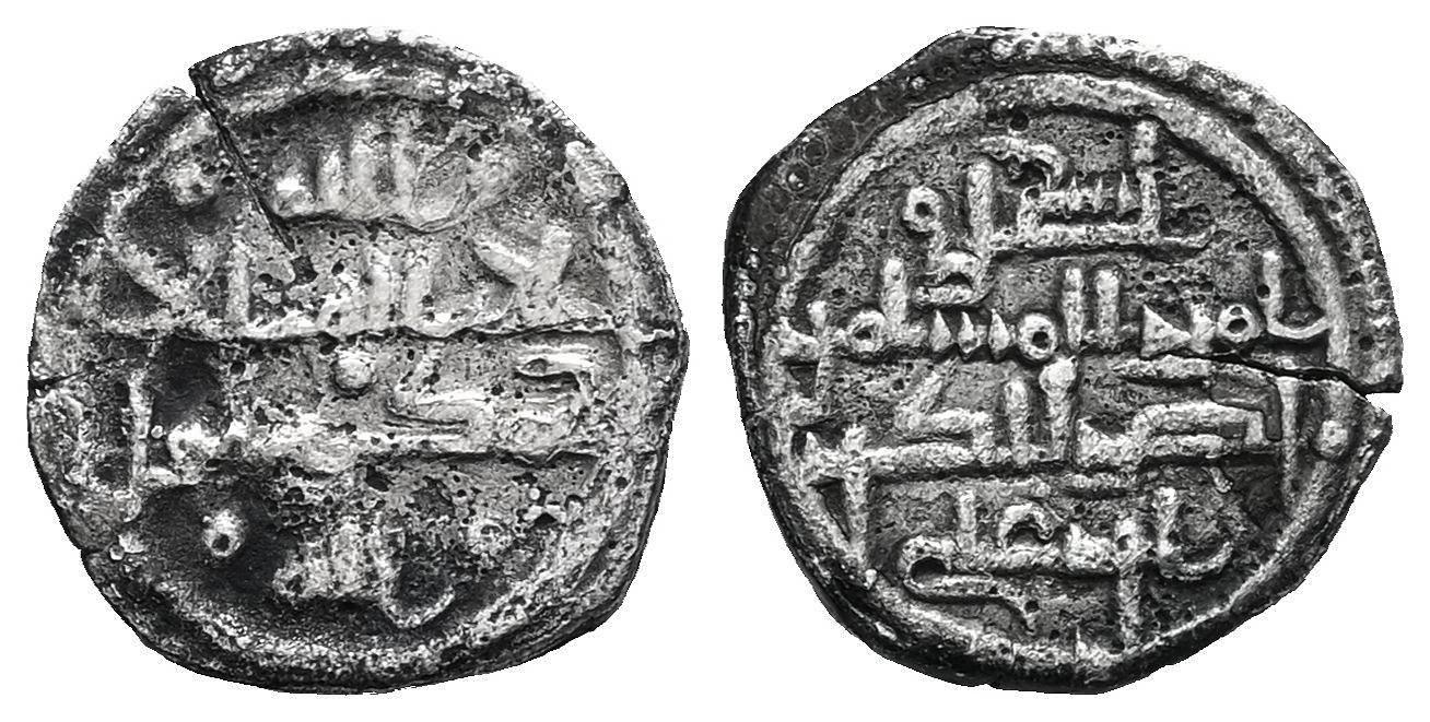 Almorávides. Ishaq Ibn Alí. Quirate. 540-541 H. (Vives-1900). (Fbm-E8). (Hazard-1045). Ag. 0,90 g. Grieta. Escasa. BC+/MBC. Est...50,00.