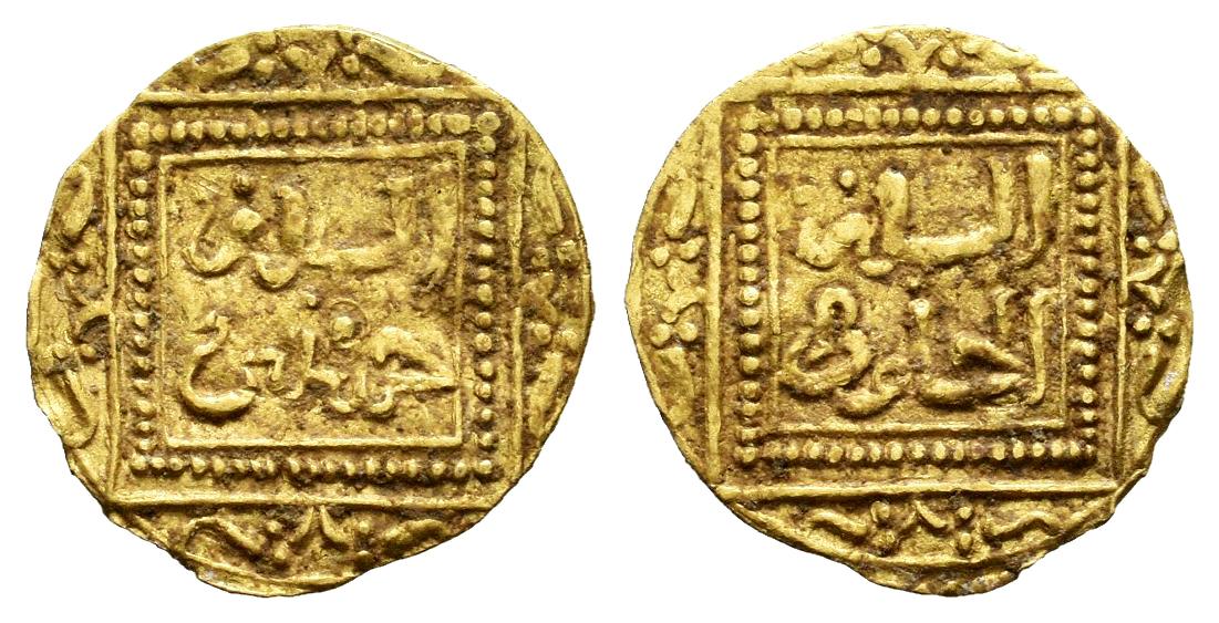 Taifas Almohades. Atribuida a los Banu Hud (Reyes de Murcia). 1/8 Dinar. Sin ceca. (Vives-No cita). Au. 0,57 g. Rara. MBC. Est...300,00.