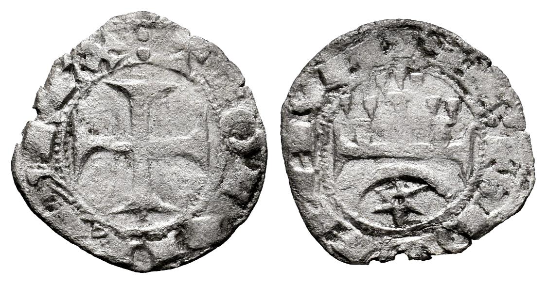 Reino de Navarra. Teobaldo I (1234-1253). Óbolo. Navarra. (Ros-3.10.2). Anv.: : TIOBALD,REX. Cruz patada. Rev.: + : DE NAVARIE : . Castillo de tres torres, debajo creciente y roel estrellado. Ve. 0,46 g. Muy rara. Ex Colección Príncipe de Viana, Tauler&Fau (24/06/2024), lote 1154. Conserva la etiqueta de la subasta. MBC-. Est...300,00.