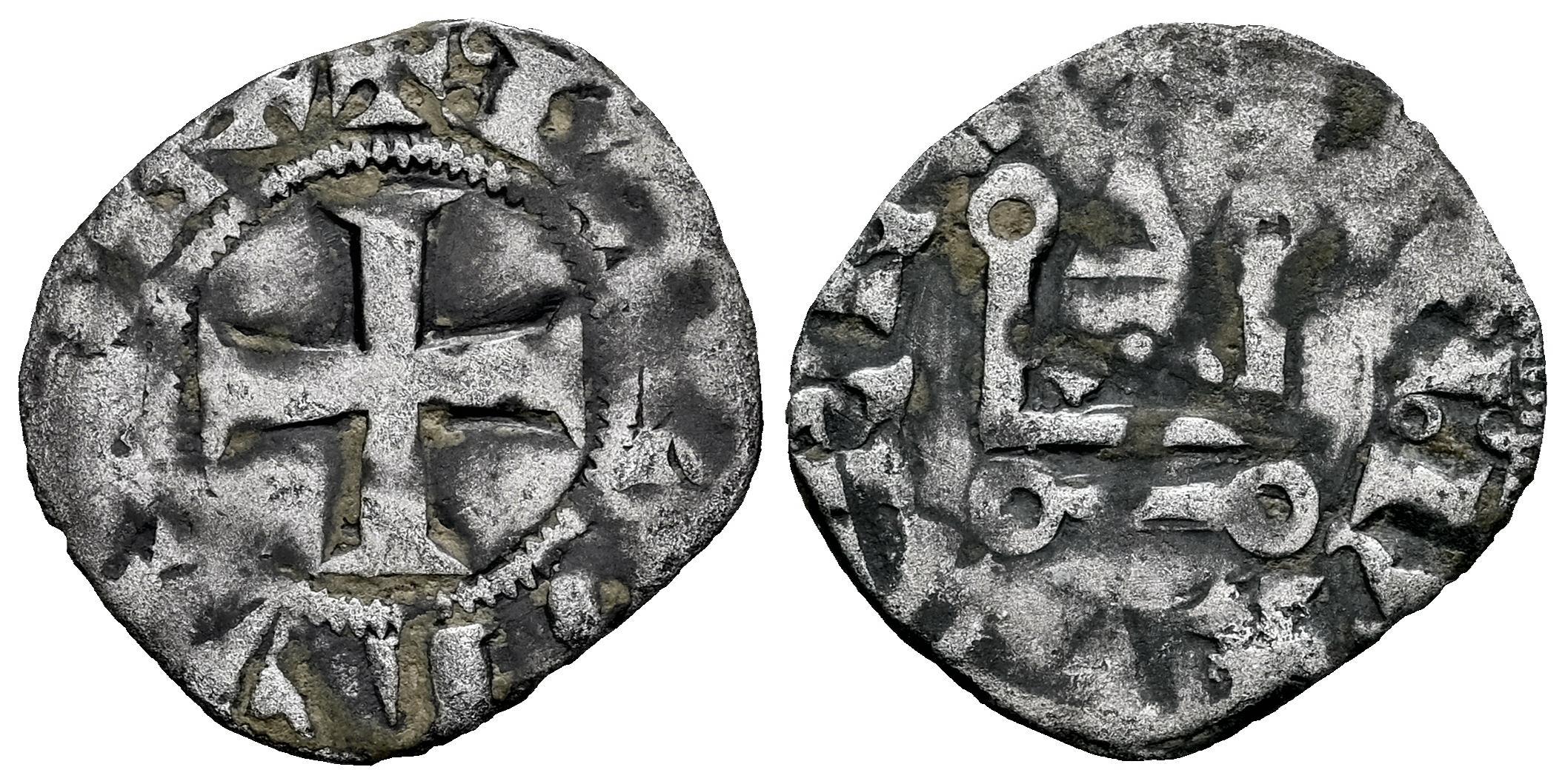 Reino de Navarra. Carlos II, el Malo (1349-1387). Dinero Carlín. Navarra. (Ros-3.14.20 var.). (Duplessy-48). Anv.: + : K(AR)OLV(S : R)EX. Cruz patada. Rev.: (+ D)E : NAVARRA. Castillo de Tournois. Ve. 0,92 g. MBC-. Est...45,00.