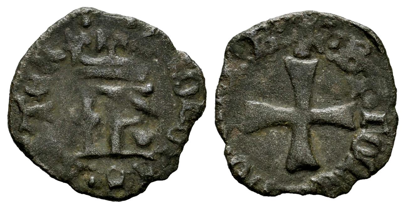 Reino de Navarra. Juan y Catalina (1483-1512). Cornado. Navarra. (Ros-3.20.23/1). (Cru V.S-294 var). Anv.: ... OHANES · KATER. IK coronadas. Rev.: + : ƧIT · NOME(N ·) DO ... B : . Cruz. Ve. 0,79 g. Escasa. Ex Colección Príncipe de Viana, Tauler&Fau (24/06/2024), lote 1341. Conserva la etiqueta de la subasta. MBC. Est...50,00.