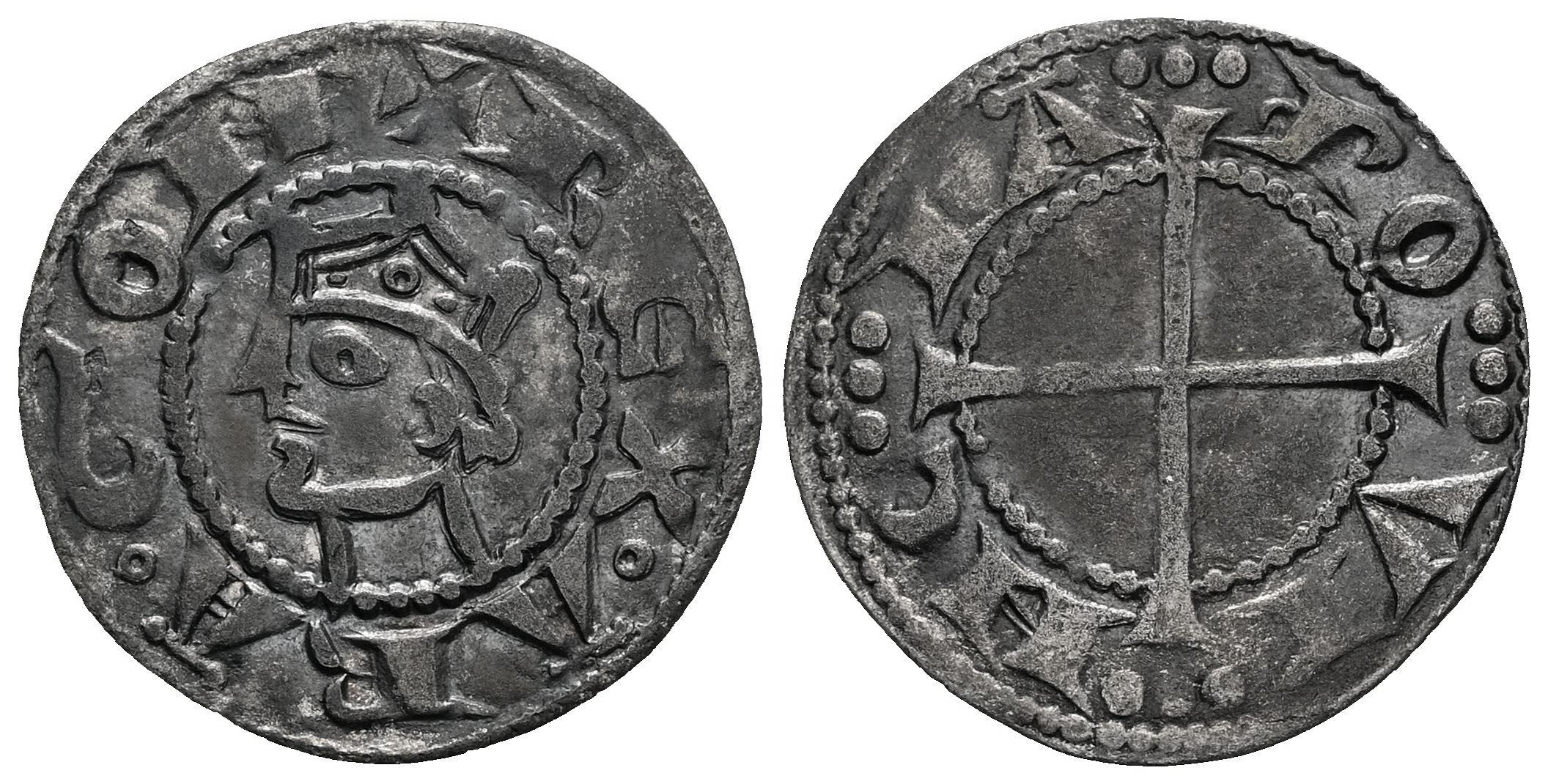 Corona de Aragón. Alfonso I (1162-1196). Denier. Arles. Condado de Provenza. (Cru V.S-170). (Boudeau-807). (Poey d'Avant-3930). Anv.: + REX • ARA ◦ GONE. Busto coronado a la izquierda. Rev.: Cruz potenzada que divide la leyenda: ⋯ PO ⋯ VI ⋯ NC ⋯ IA. Ve. 0,70 g. Ligera pátina. MBC. Est...80,00.