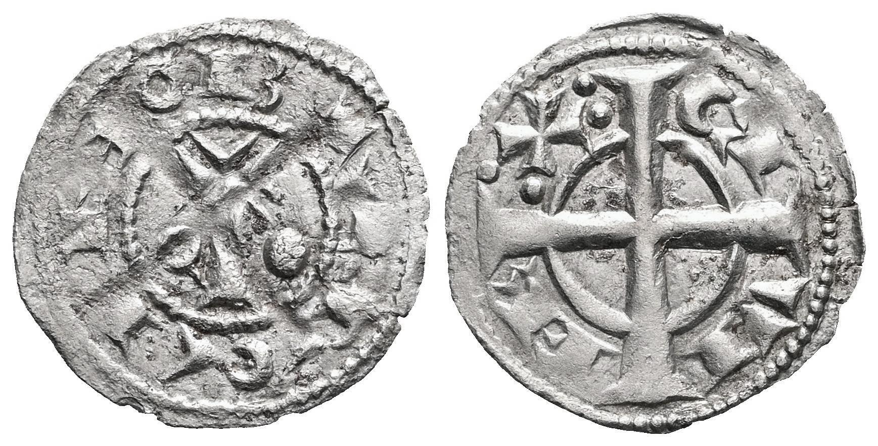 Corona de Aragón. Alfonso I (1109-1126). Óbolo. Barcelona. (Cru V.S-297). (Cru C.G-2101). Anv.: BARQINO. Rev.: CI / VI / RE / :X:. Ve. 0,41 g. MBC/EBC-. Est...80,00.