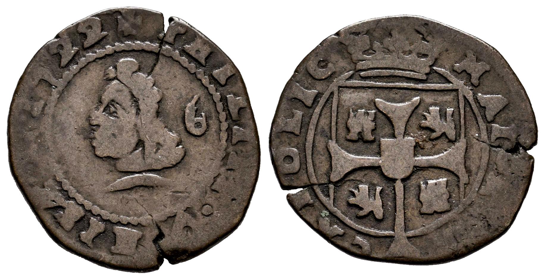 Felipe V (1700-1746). Treseta. 1722. Mallorca. (Cal-6). Ae. 3,80 g. Grietas. MBC-. Est...40,00.