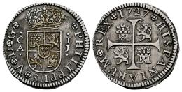 Felipe V (1700-1746). 1/2 real. 1727. Cuenca. JJ. (Cal-107). Ag. 0,98 g. Suciedad en anverso. MBC+. Est...35,00.