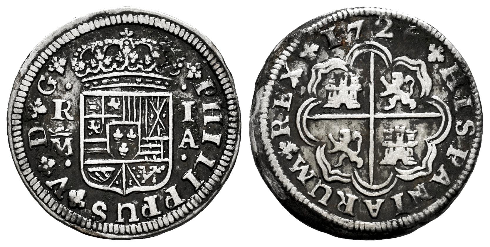 Felipe V (1700-1746). 1 real. 1726. Madrid. A. (Cal-437). Ag. 2,50 g. Barnizada. MBC+. Est...45,00.