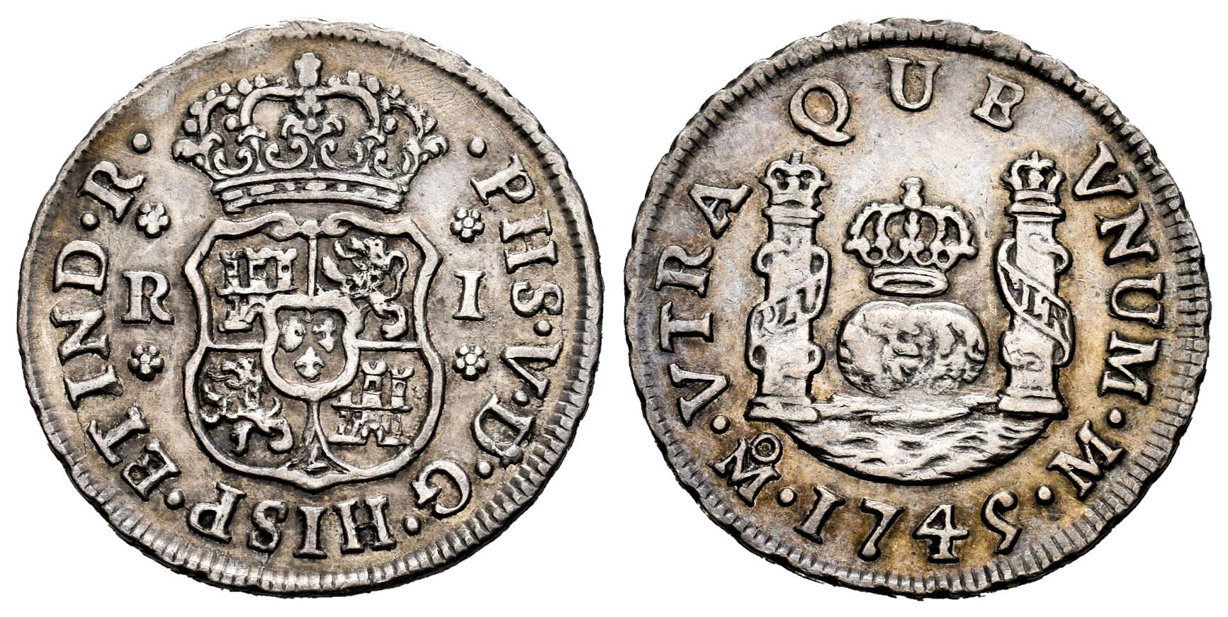 Felipe V (1700-1746). 1 real. 1745. México. M. (Cal-522). Ag. 3,38 g. Restos de brillo original. Suave tono. Escasa. EBC. Est...200,00.