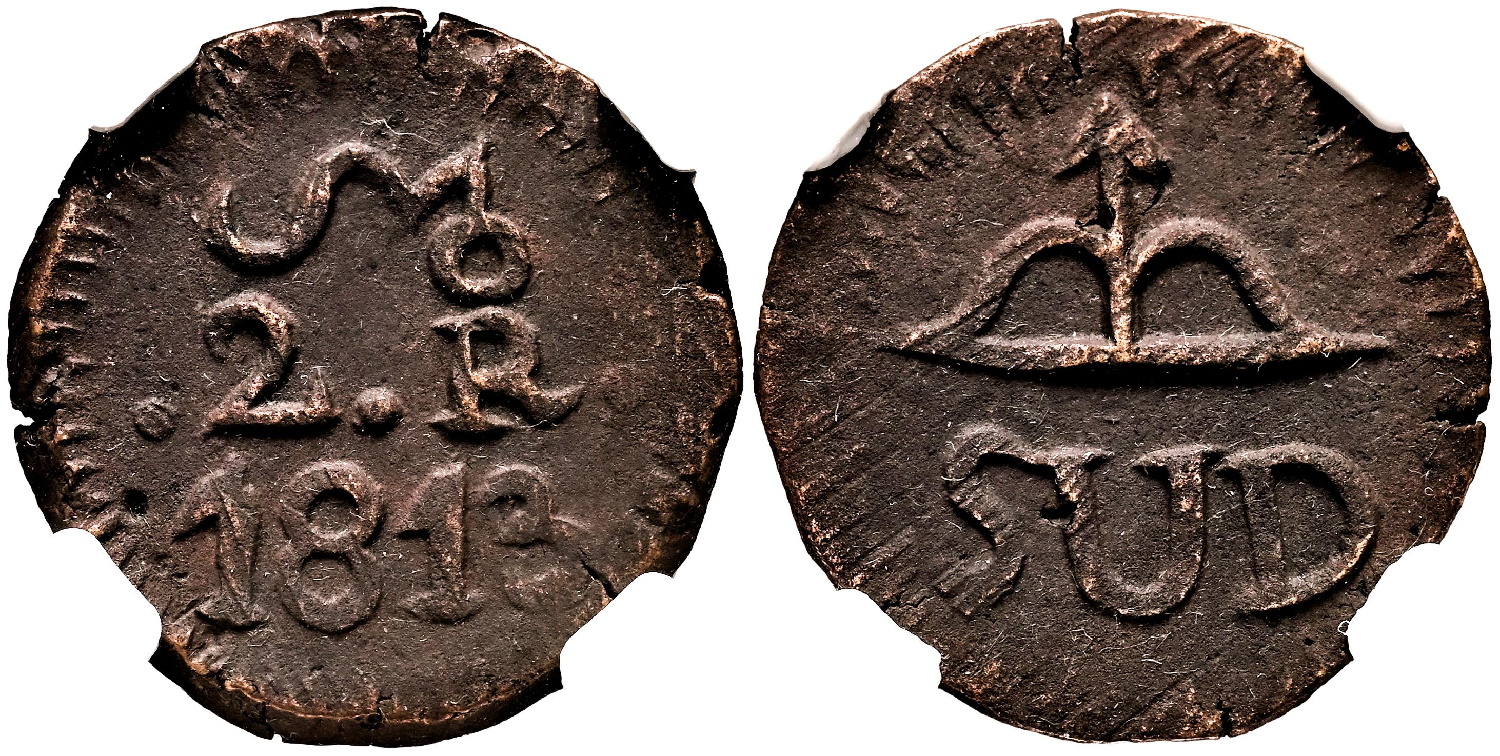 Fernando VII (1808-1833). 2 reales. 1813. Morelos. (Cal-885). Ae. Acuñación muy completa, magnífico ejemplar para este tipo. Escasa así. Encapsulada por NGC como AU 53 BN. Est...120,00.