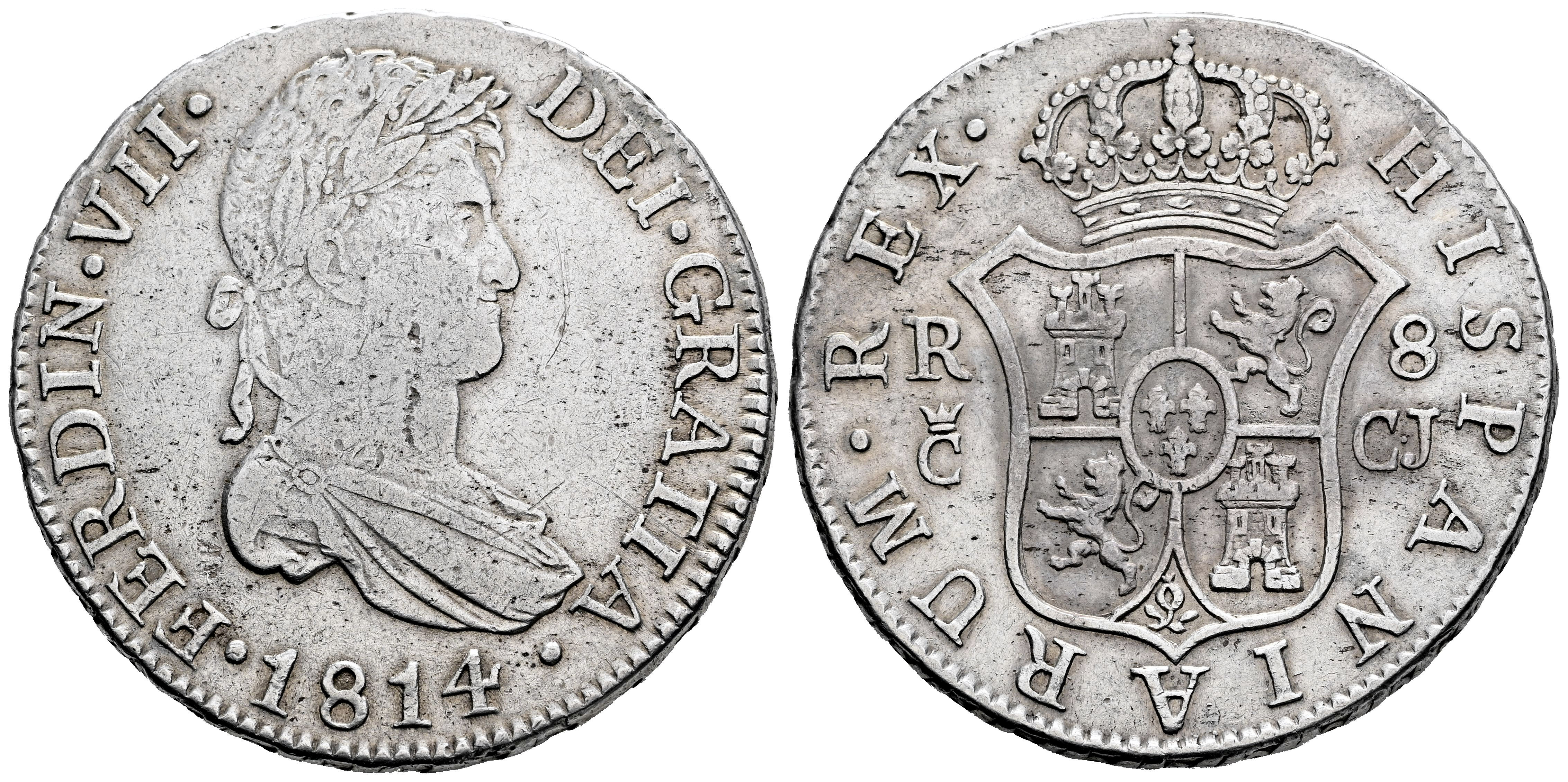 Fernando VII (1808-1833). 8 reales. 1814. Cádiz. CJ. (Cal-1154). Ag. 26,80 g. Ligeramente limpiada. MBC-/MBC. Est...250,00.