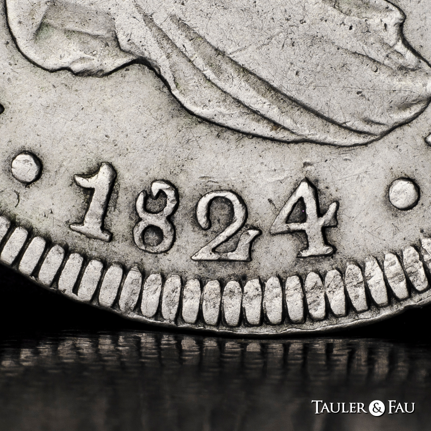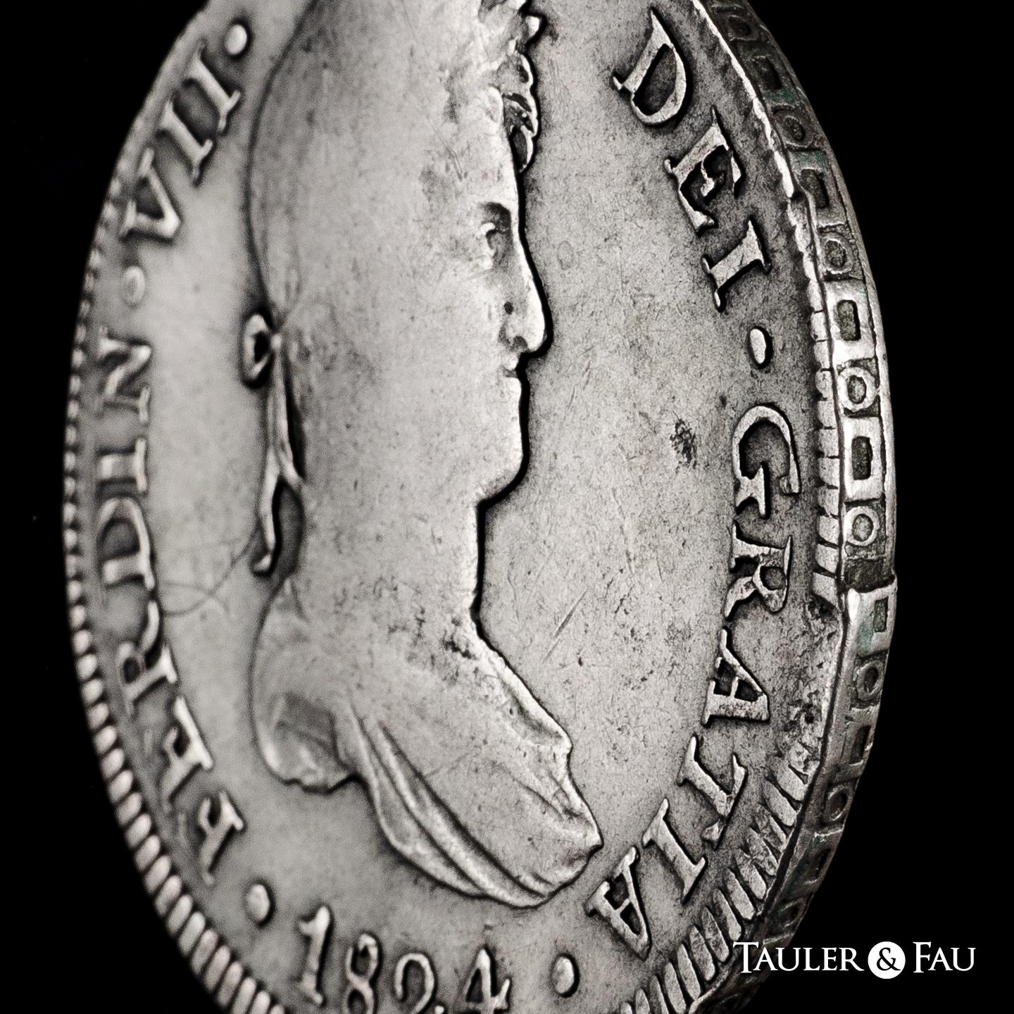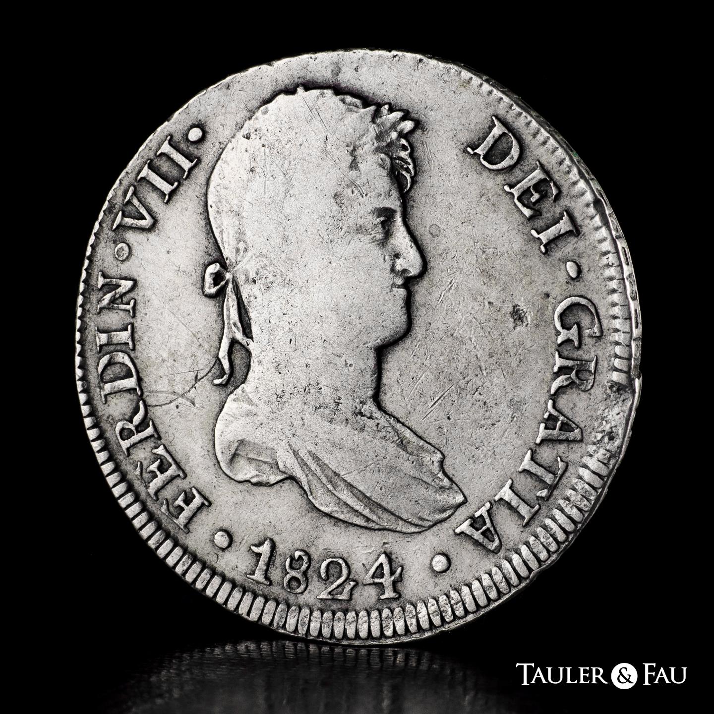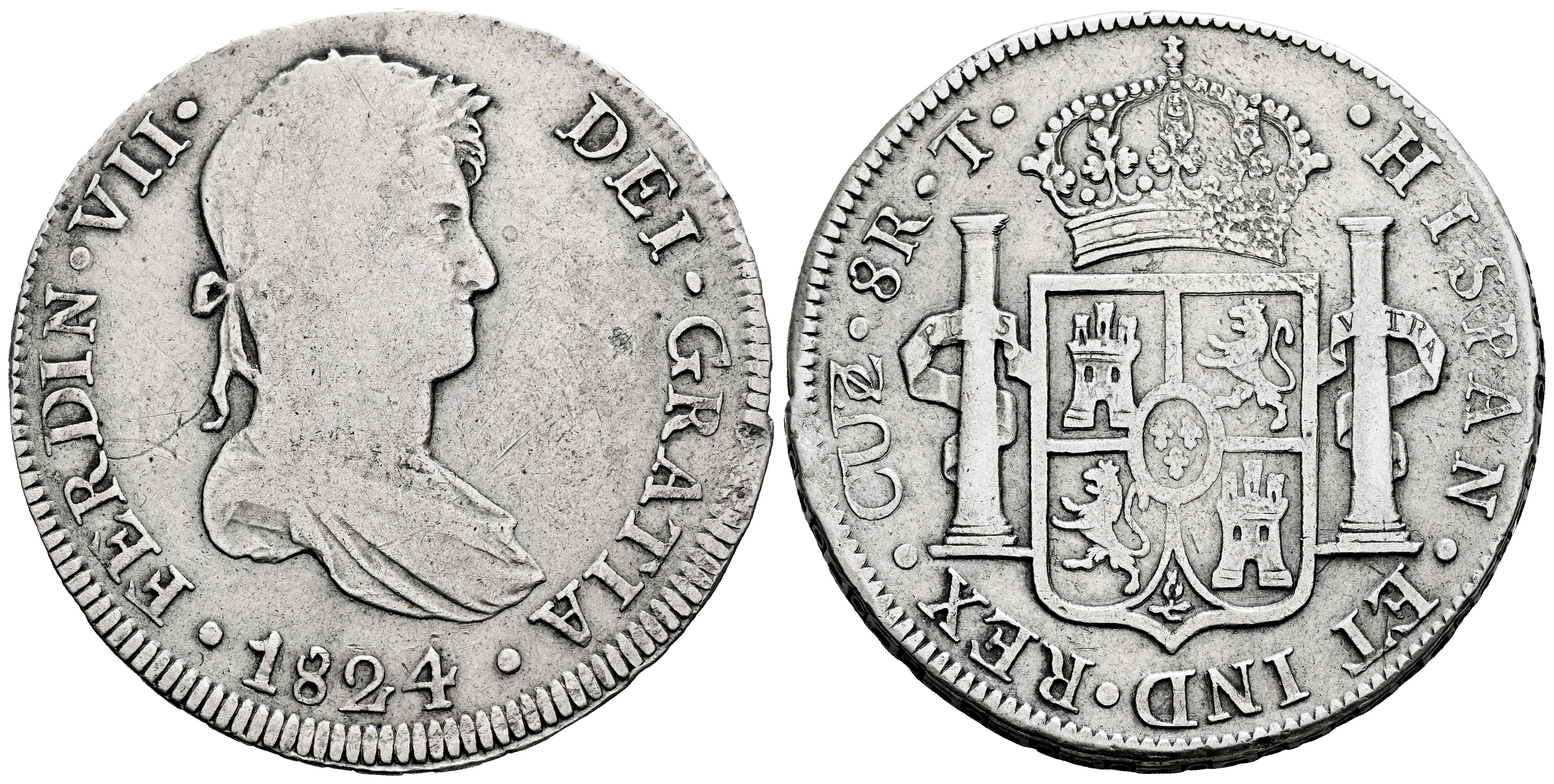 Fernando VII (1808-1833). 8 reales. 1824. Cuzco. T. (Cal-1178). Ag. 26,00 g. Rayita en anverso. Escasa. Ex J. A. Herrero 18 (08/02/2018), lote 502. MBC. Est...220,00.