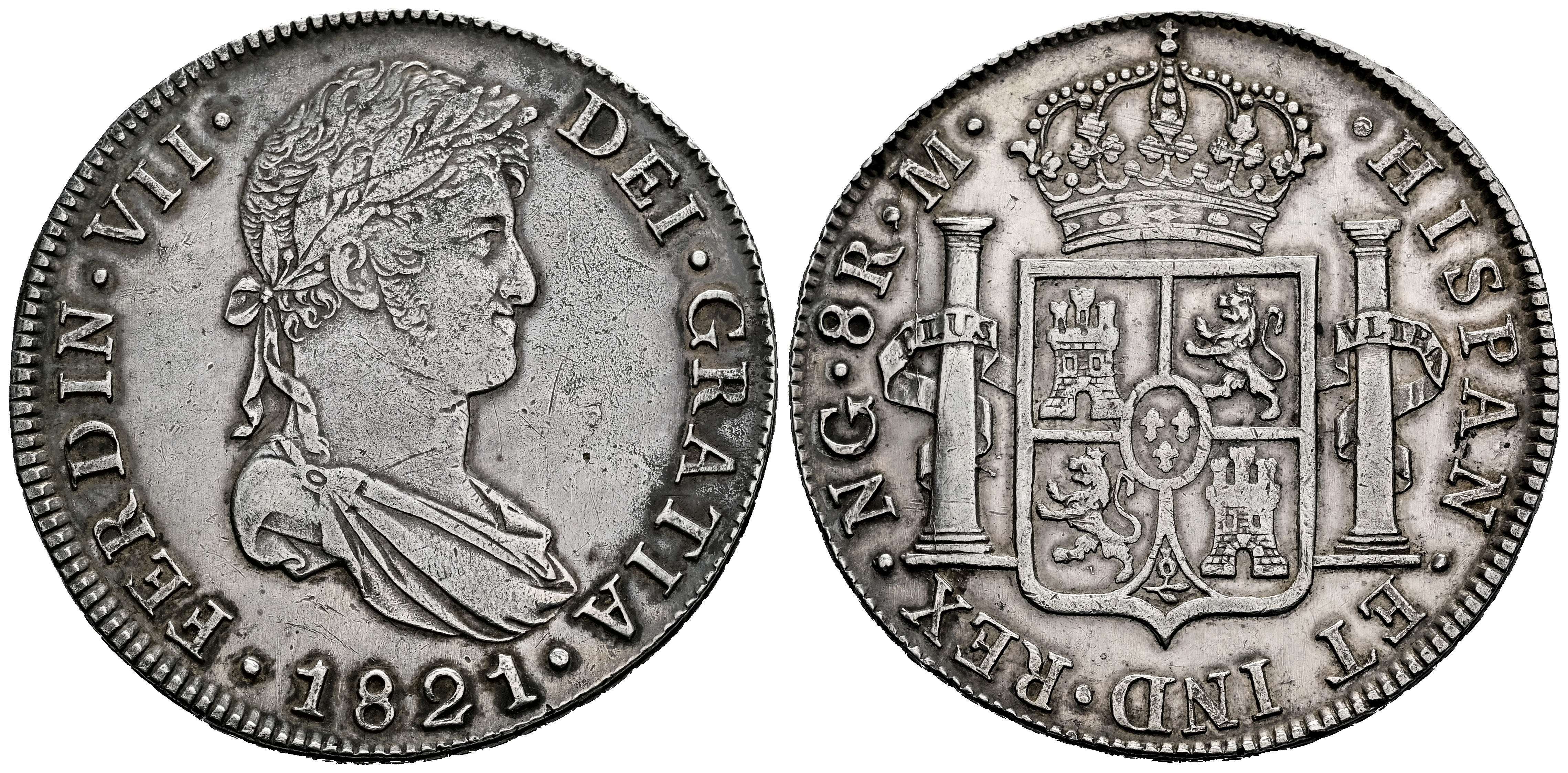 Fernando VII (1808-1833). 8 reales. 1821. Guatemala. M. (Cal-1236). Ag. 27,00 g. Suave tono. Ligeramente limpiada. MBC+. Est...250,00.