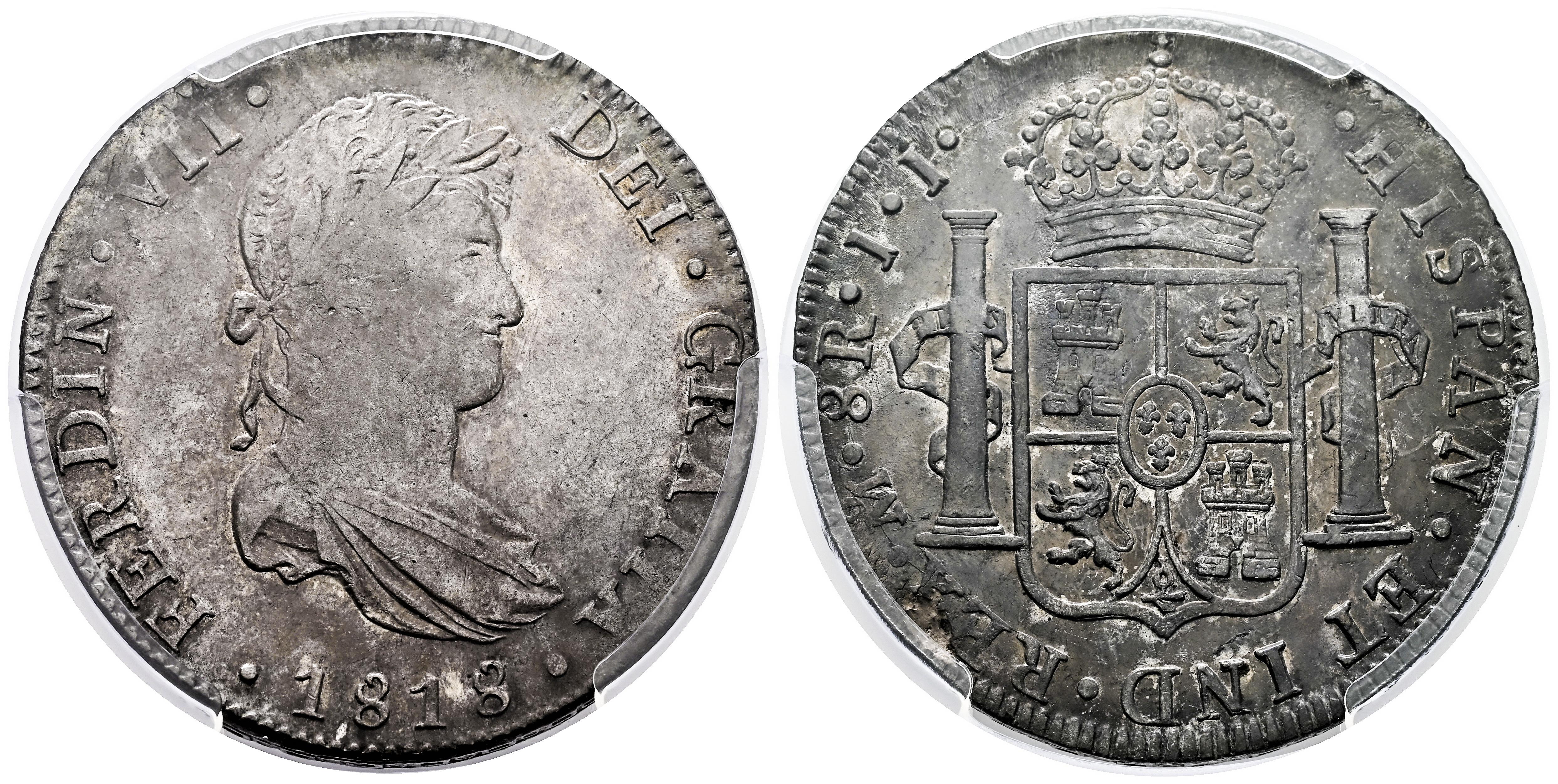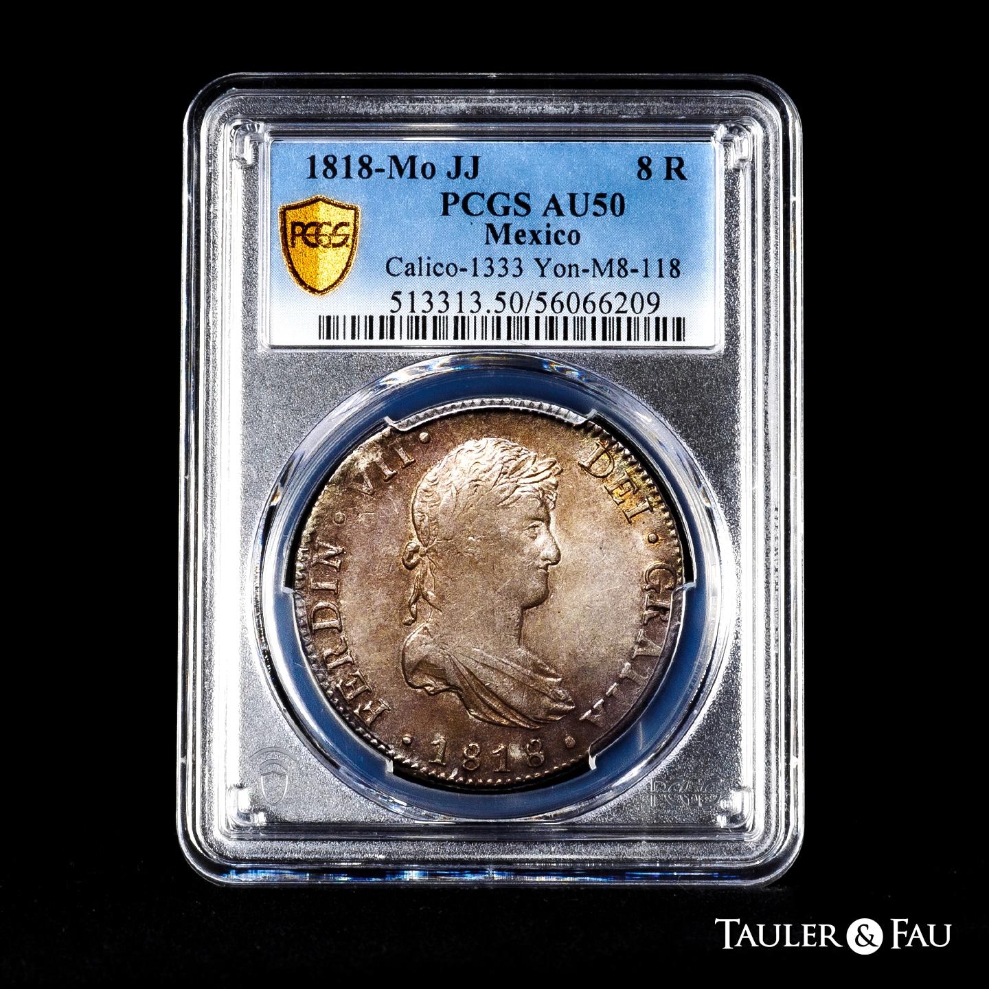 Fernando VII (1808-1833). 8 reales. 1818. México. JJ. (Cal-1333). Ag. Pátina. Encapsulada por PCGS como AU 50. Est...200,00.