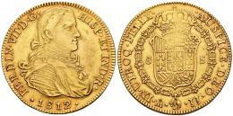 Fernando VII (1808-1833). 8 escudos. 1812. México. JJ. (Cal-1787). (Cal onza-1260). Au. 26,96 g. Busto imaginario. Escasa. MBC+. Est...3200,00.