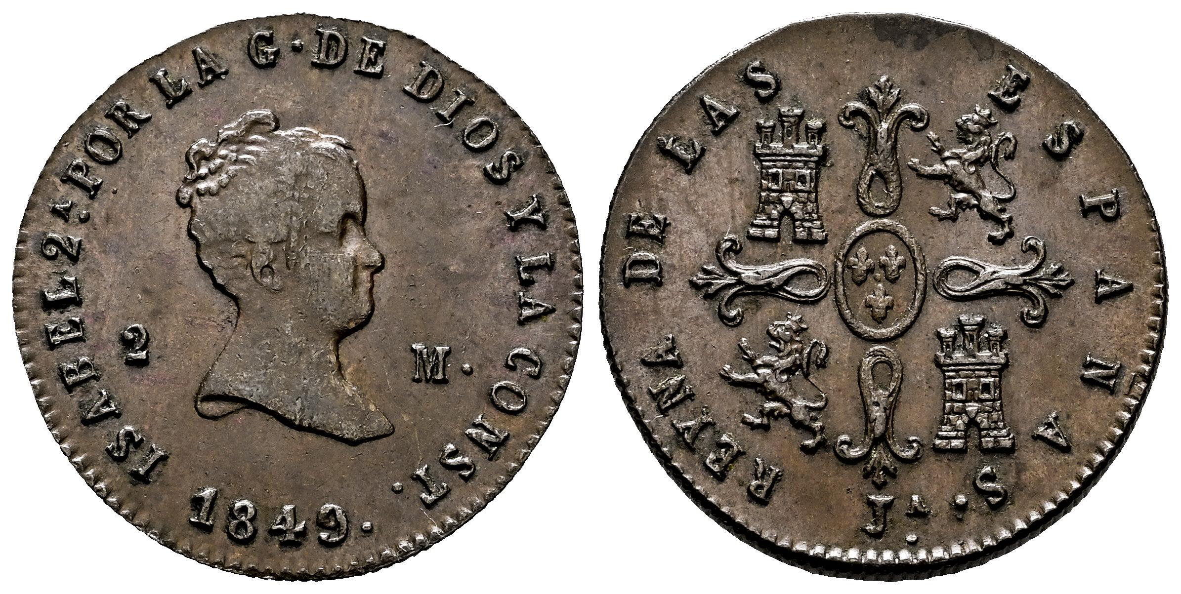 Isabel II (1833-1868). 2 maravedís. 1849. Jubia. (Cal-47). Ae. 2,55 g. Marca de ceca JA. MBC+/EBC-. Est...60,00.