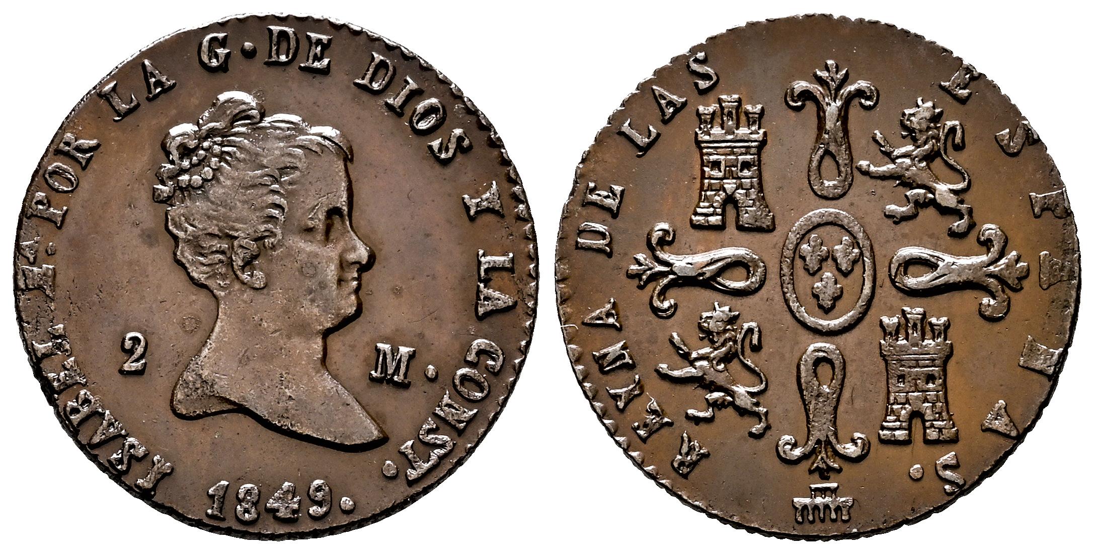 Isabel II (1833-1868). 2 maravedís. 1849. Segovia. (Cal-61). Ae. 2,11 g. EBC-. Est...60,00.