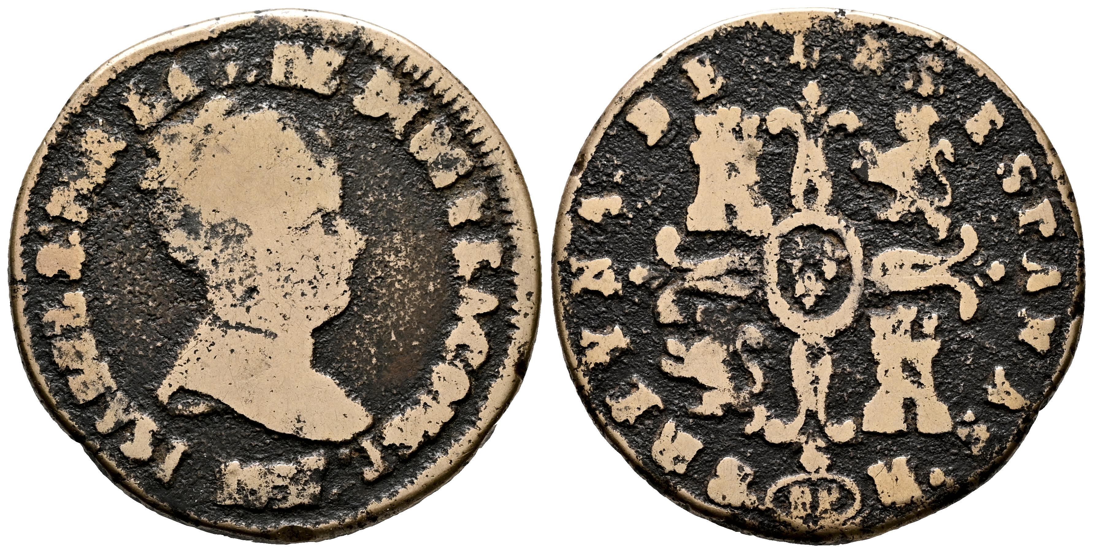 Isabel II (1833-1868). 8 maravedís. 1837. Pamplona. (Cal-119). Ae. 11,31 g. Fundida. Escasa. BC. Est...60,00.