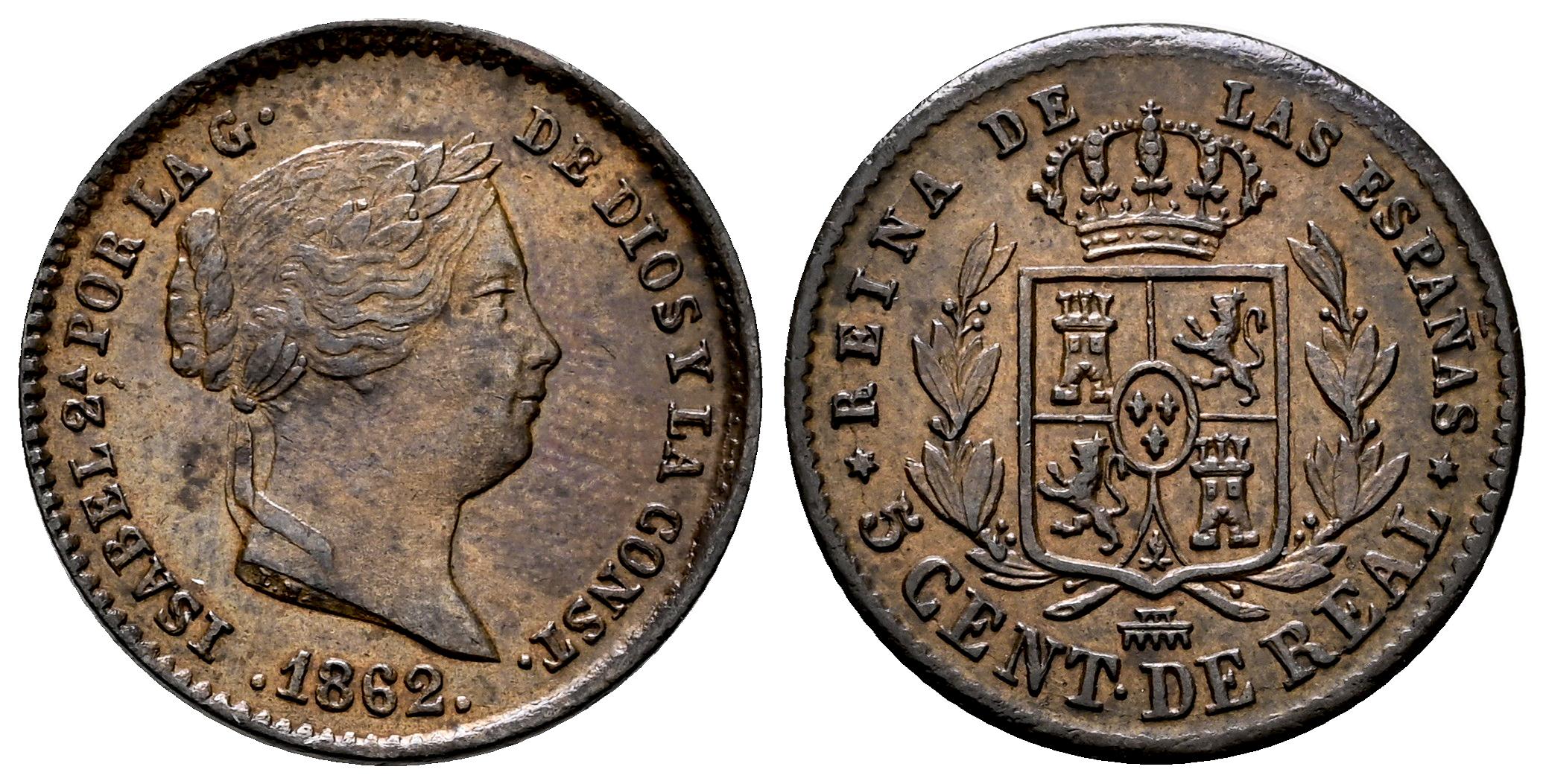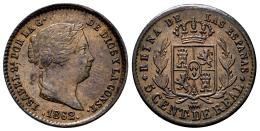 Isabel II (1833-1868). 5 céntimos de real. 1862. Segovia. (Cal-167). Ae. 1,95 g. EBC/EBC-. Est...50,00.