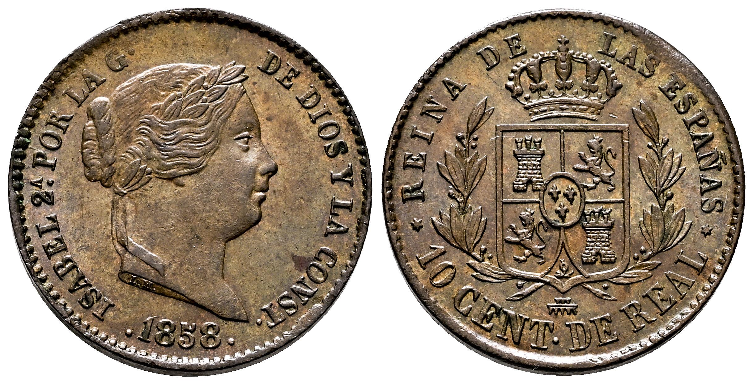 Isabel II (1833-1868). 10 céntimos de real. 1858. Segovia. (Cal-174). Ae. 3,90 g. EBC. Est...70,00.