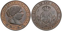 Isabel II (1833-1868). 5 céntimos de escudo. 1866. Segovia. OM. (Cal-258). Ae. 12,43 g. Bonito color. EBC. Est...90,00.