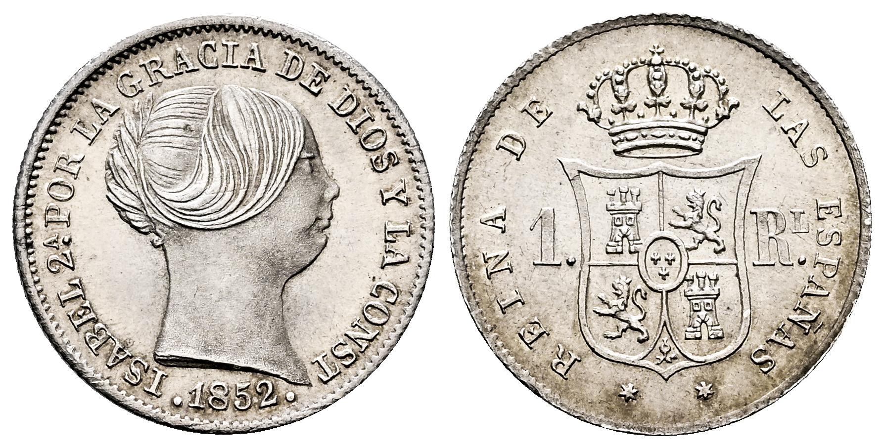 Isabel II (1833-1868). 1 real. 1852. Madrid. (Cal-302). Ag. 1,34 g. Restos de brillo original. EBC/EBC+. Est...70,00.