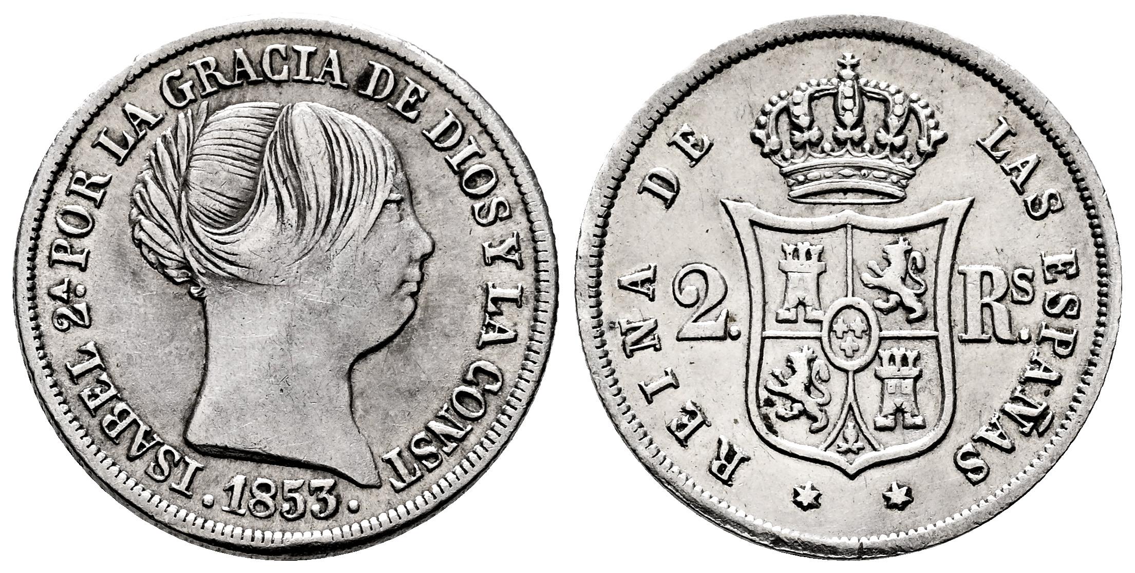Isabel II (1833-1868). 2 reales. 1853. Madrid. (Cal-368). Ag. 2,54 g. Escasa. MBC+. Est...75,00.