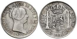 Isabel II (1833-1868). 10 reales. 1851. Barcelona. (Cal-506). Ag. 12,98 g. Golpecitos en el canto. Limpiada. Muy rara. MBC+. Est...500,00.