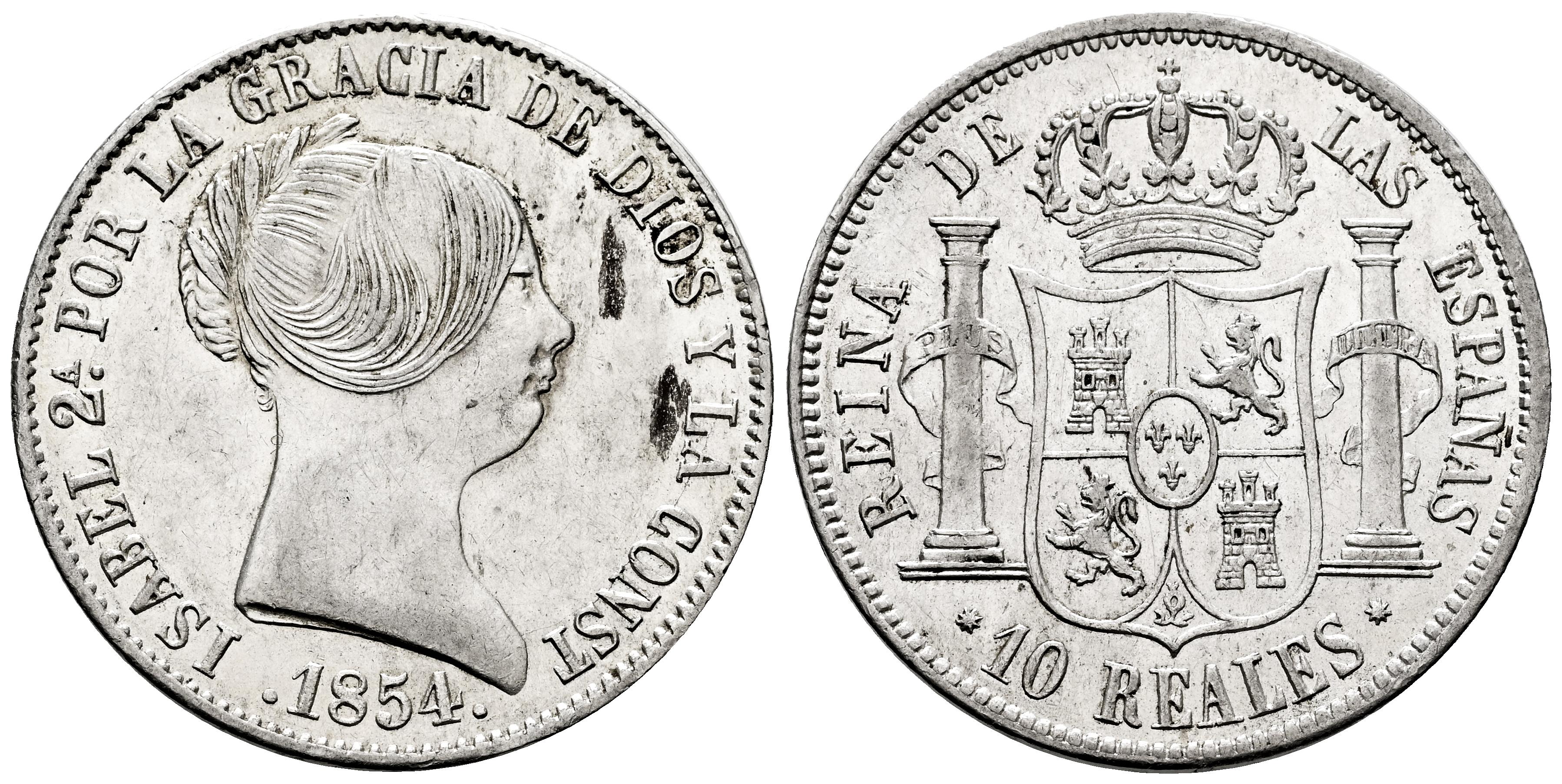 Isabel II (1833-1868). 10 reales. 1854. Barcelona. (Cal-509). Ag. 13,04 g. Restos de brillo original. Suaves rayitas. EBC. Est...250,00.