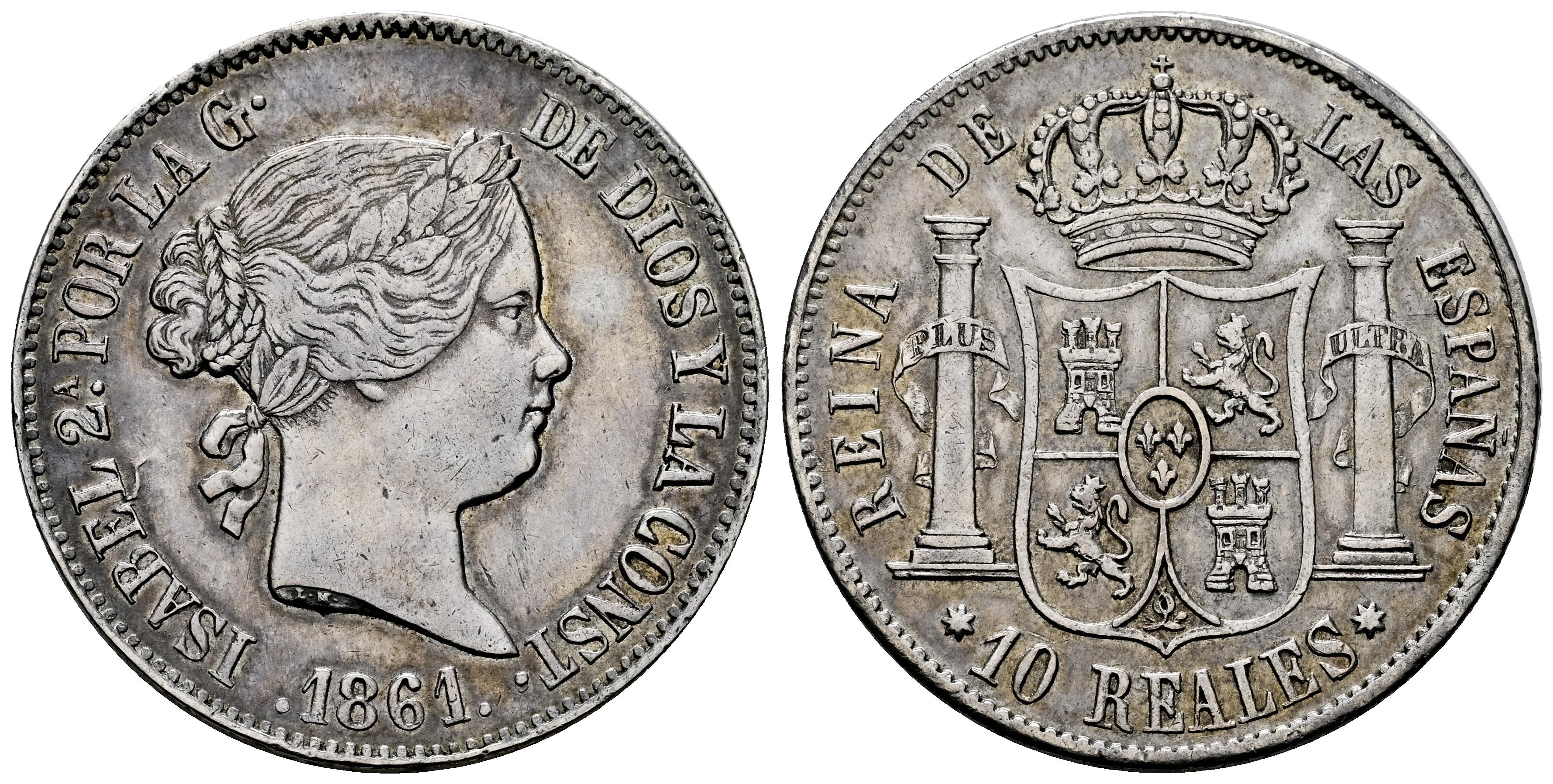 Isabel II (1833-1868). 10 reales. 1861. Sevilla. (Cal-560). Ae. 12,60 g. Limpiada. Rara. MBC+. Est...120,00.