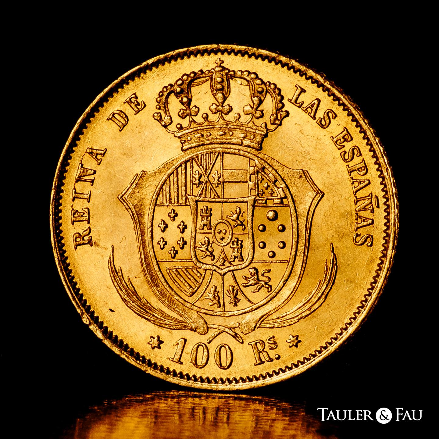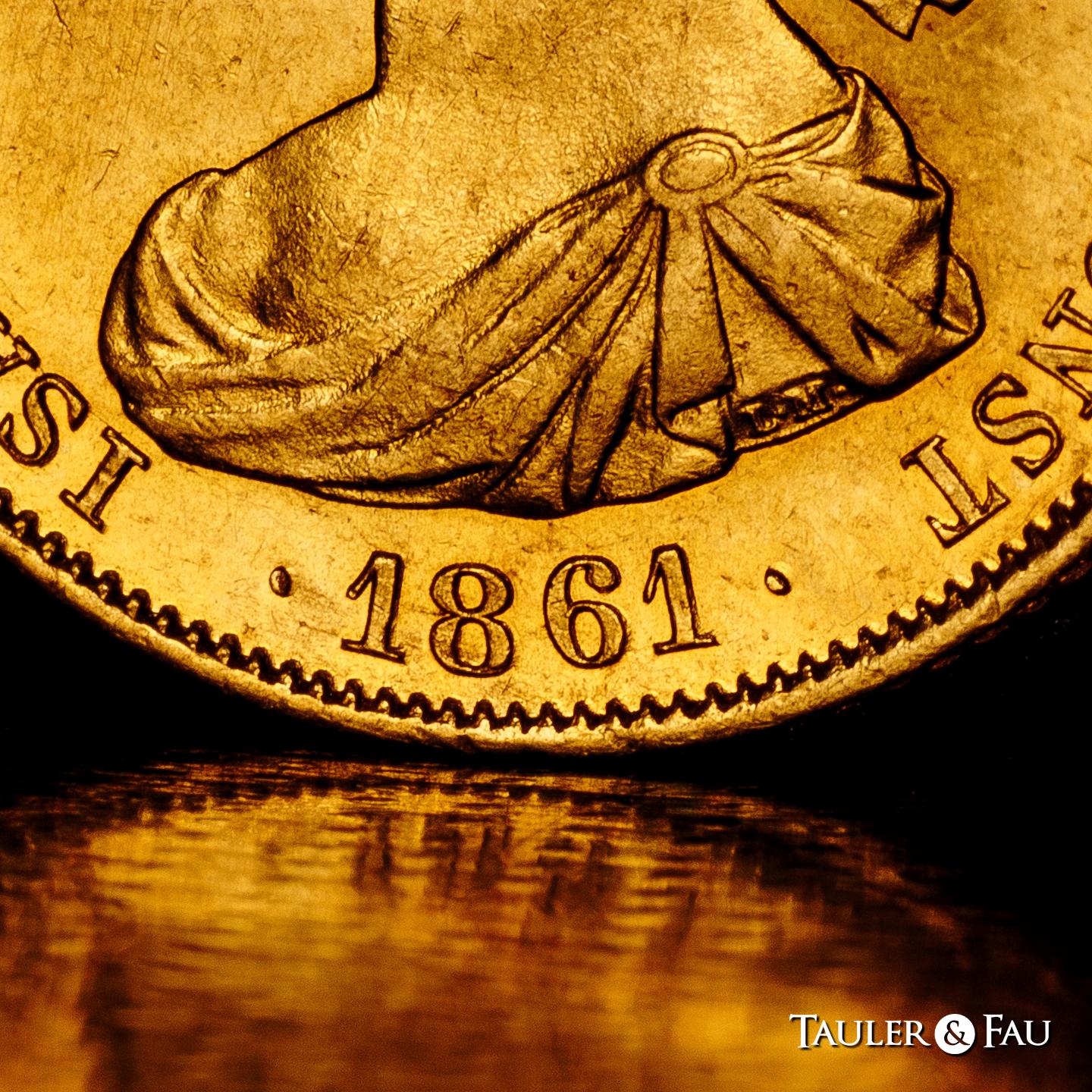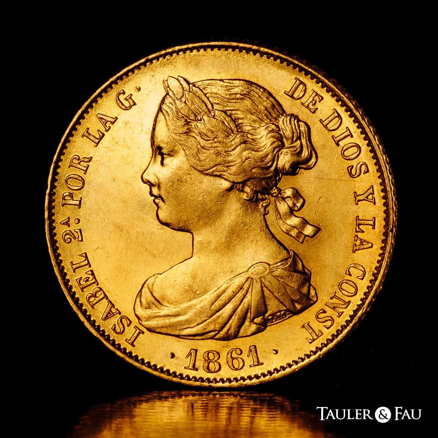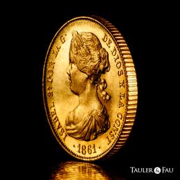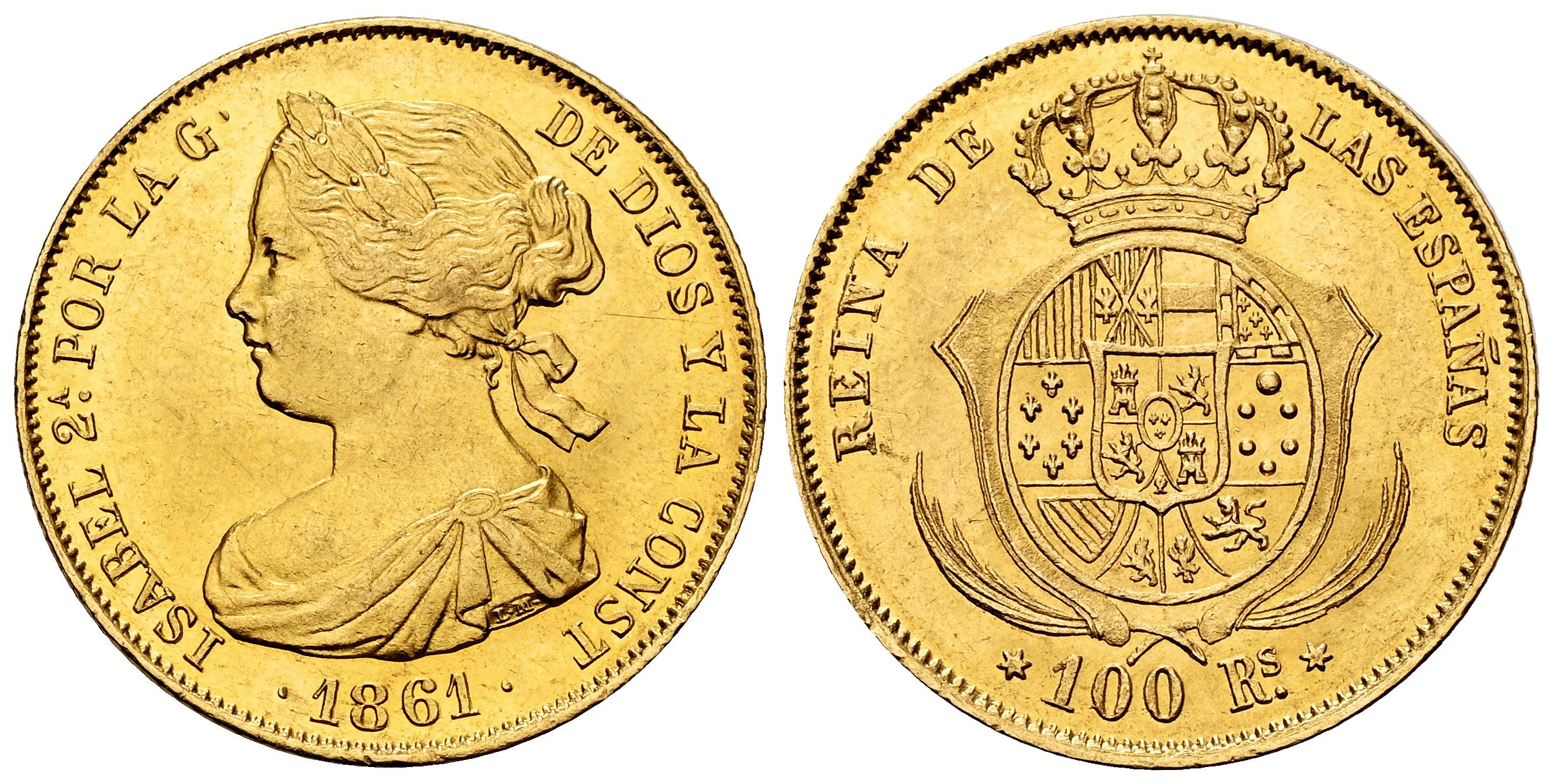 Isabel II (1833-1868). 100 reales. 1861. Madrid. (Cal-788). Au. 8,40 g. Brillo original y bonito color. EBC+. Est...750,00.