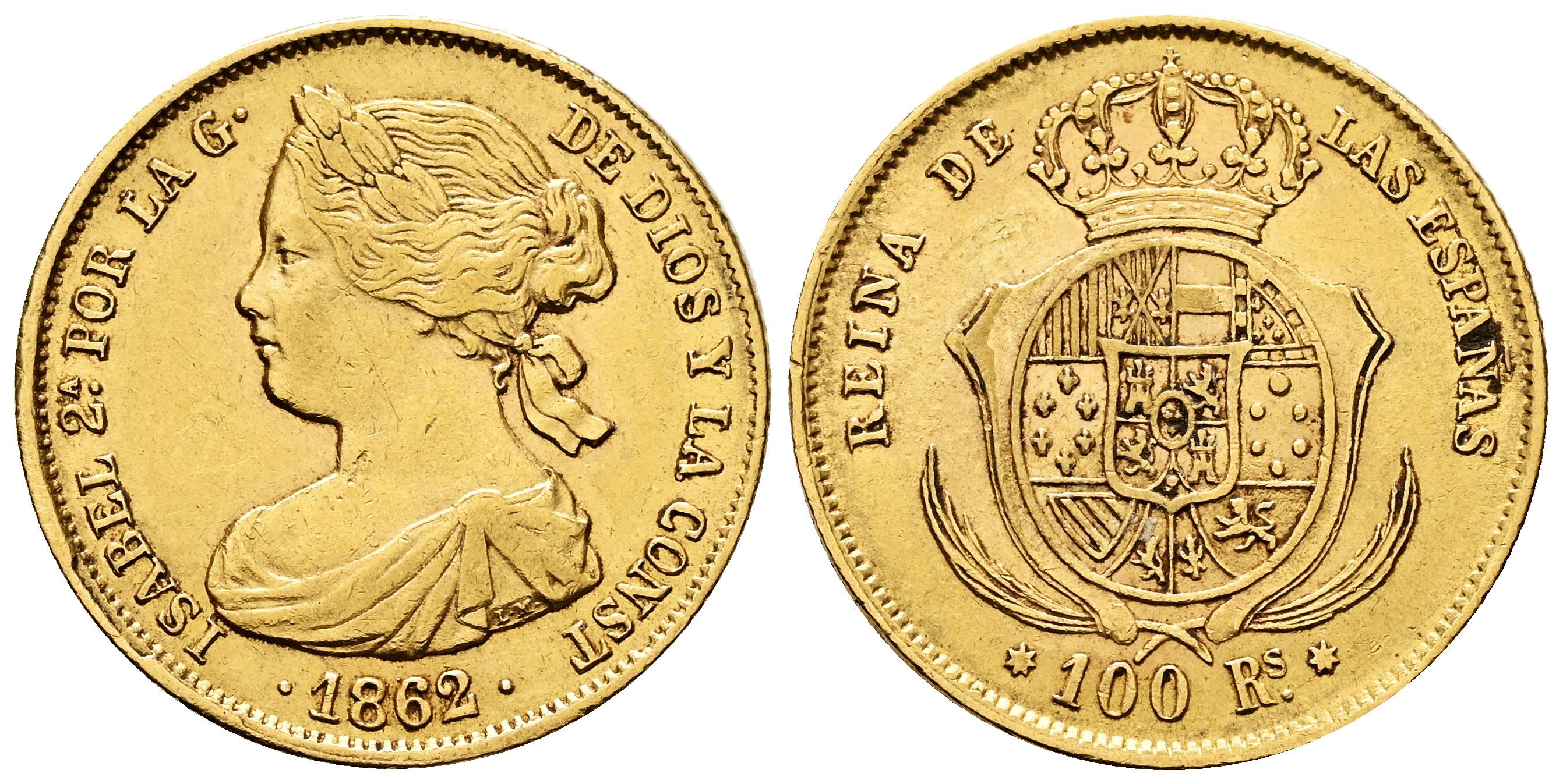 Isabel II (1833-1868). 100 reales. 1862. Sevilla. (Cal-805). Au. 8,36 g. MBC+/EBC-. Est...700,00.