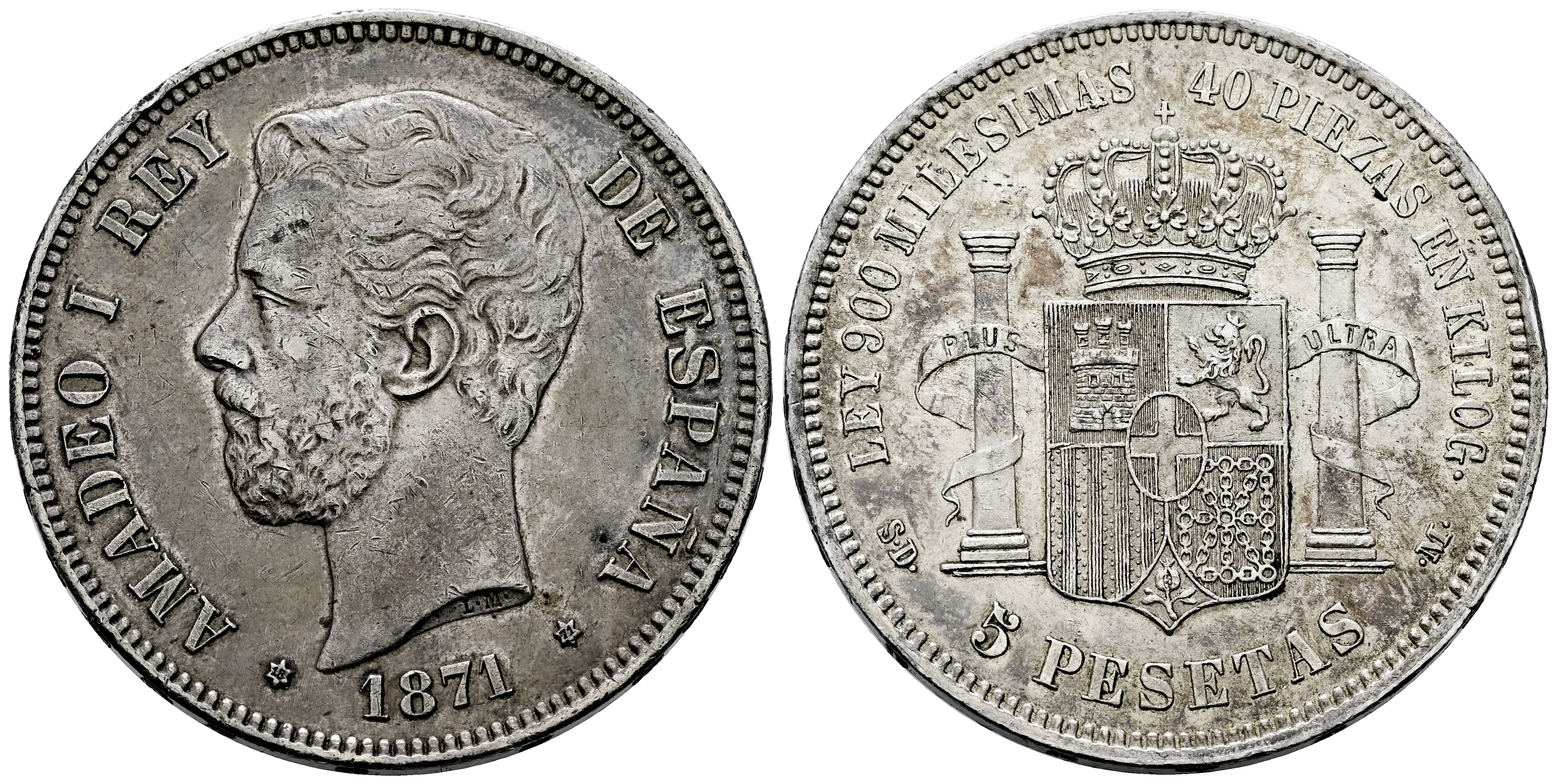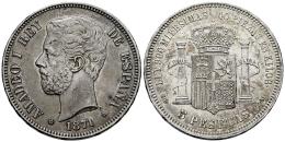 Centenario de la Peseta (1868-1931). Amadeo I (1871-1873). 5 pesetas. 1871*18-71. Madrid. SDM. (Cal-1). Ag. 25,00 g. Golpes en el canto. Ligera pátina. EBC-. Est...60,00.