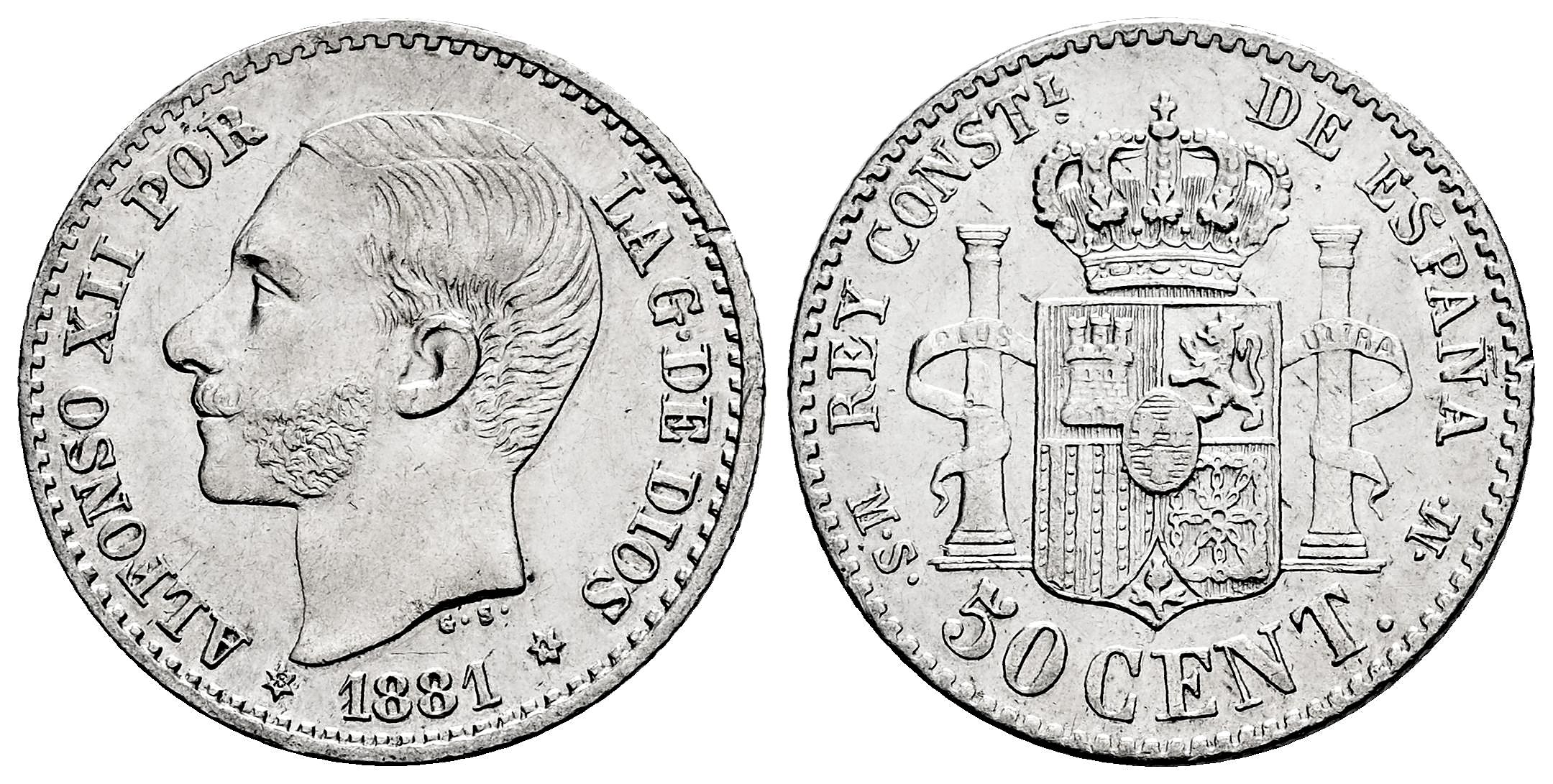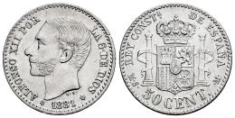 Centenario de la Peseta (1868-1931). Alfonso XII (1874-1885). 50 céntimos. 1881*8-1. Madrid. MSM. (Cal-12). Ag. 2,52 g. Golpecito en el canto. Restos de brillo original. Ex Colección Ridao, Soler&Llach (25/10/2018) lote 38. SC-. Est...60,00.